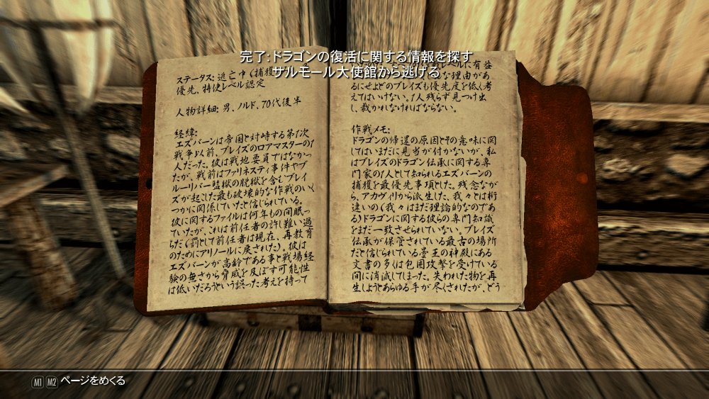 「サルモール調査:エズバーン」を読んで、ドラゴン復活に関する情報を入手しよう。大使館での情報収集は完了となり、目的が大使館からの脱出に切り替わる。
