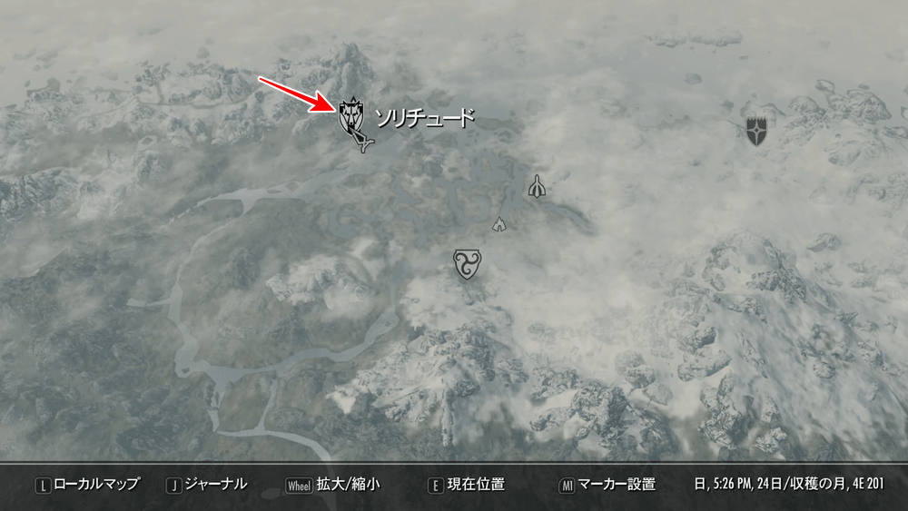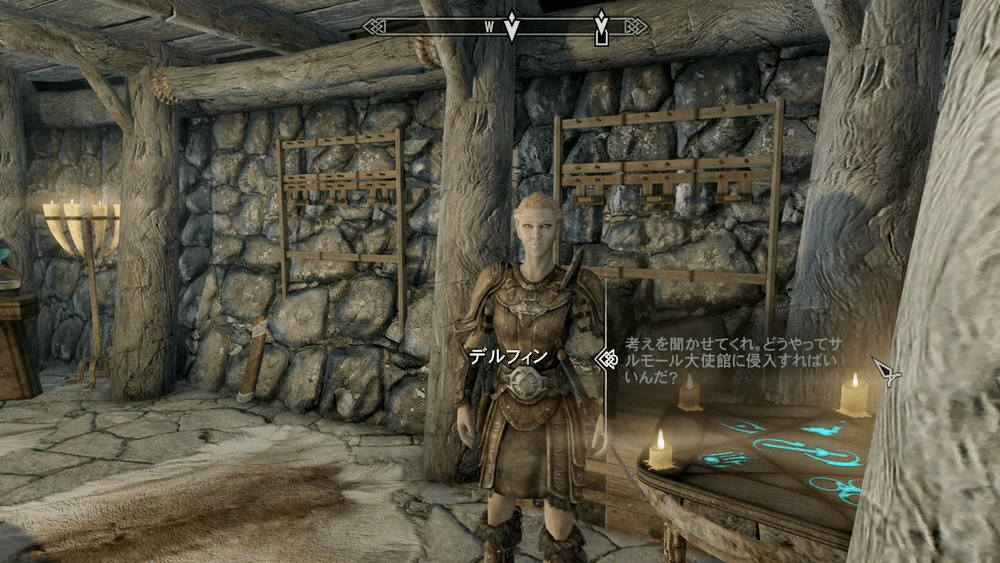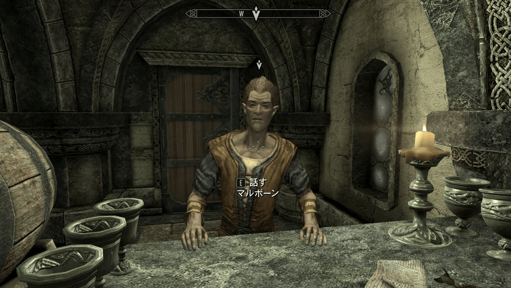 マップ 外観 デルフィンとの会話後、ソリチュードの宿屋にいるマルボーンと会おう。ソリチュードへ初めて行く場合は、ホワイトランなどで馬車を利用すると良い。宿屋は、ソリチュード城内に入ってすぐ左側にある。