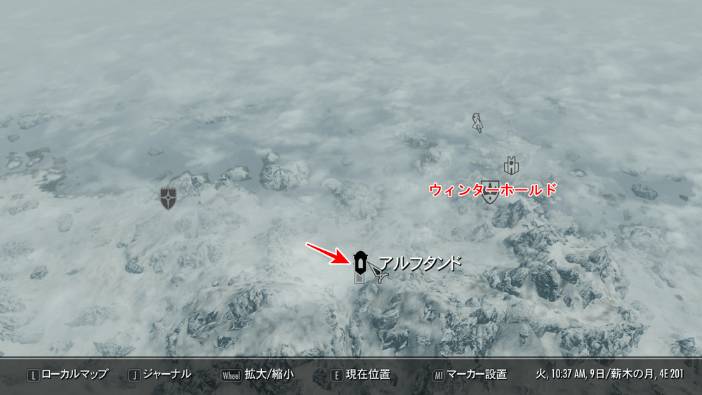 マップ 外観 ウィンターホールドの南西にある、アルフタンドへ向かおう。アルフタンドは非常に大規模なダンジョンとなっているため、装備やアイテムを整えてから向かうと良い。