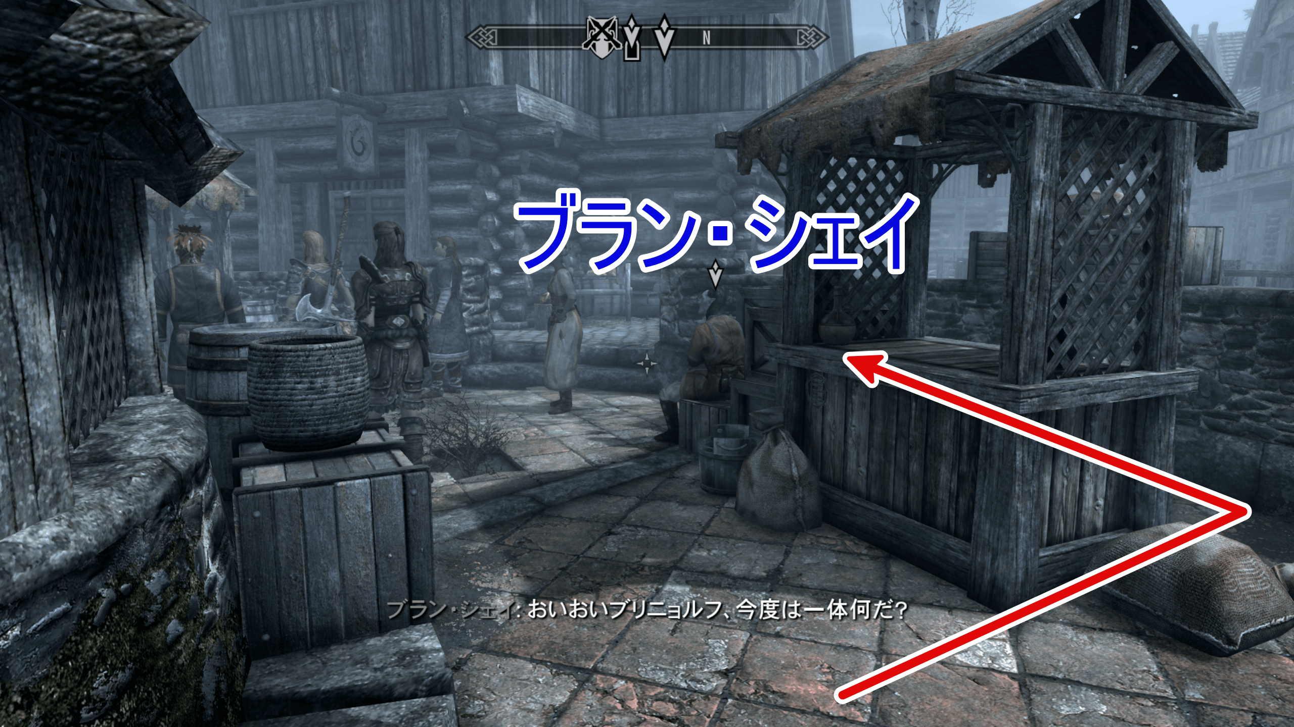 マデシの銀の指輪を盗んだら、広場にいるブラン・シェイに近づこう。ブラン・シェイの背後にある屋台から隠密しながら近づき、スリでマデシの銀の指輪を送りつけるのがおすすめ。