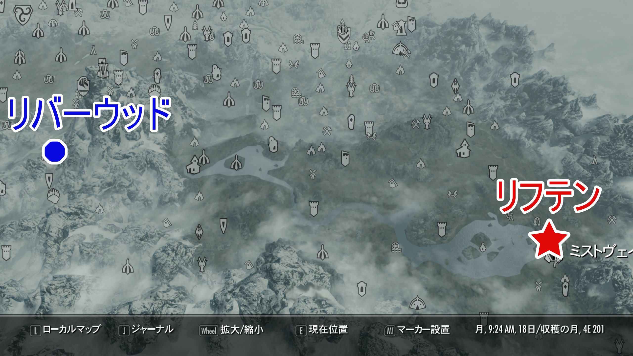 チャンスのお膳立てを受注するために、まずはリフテンに向かおう。リフテンはマップ南東にあり、一度も訪れていないときは自力で向かう必要がある。
