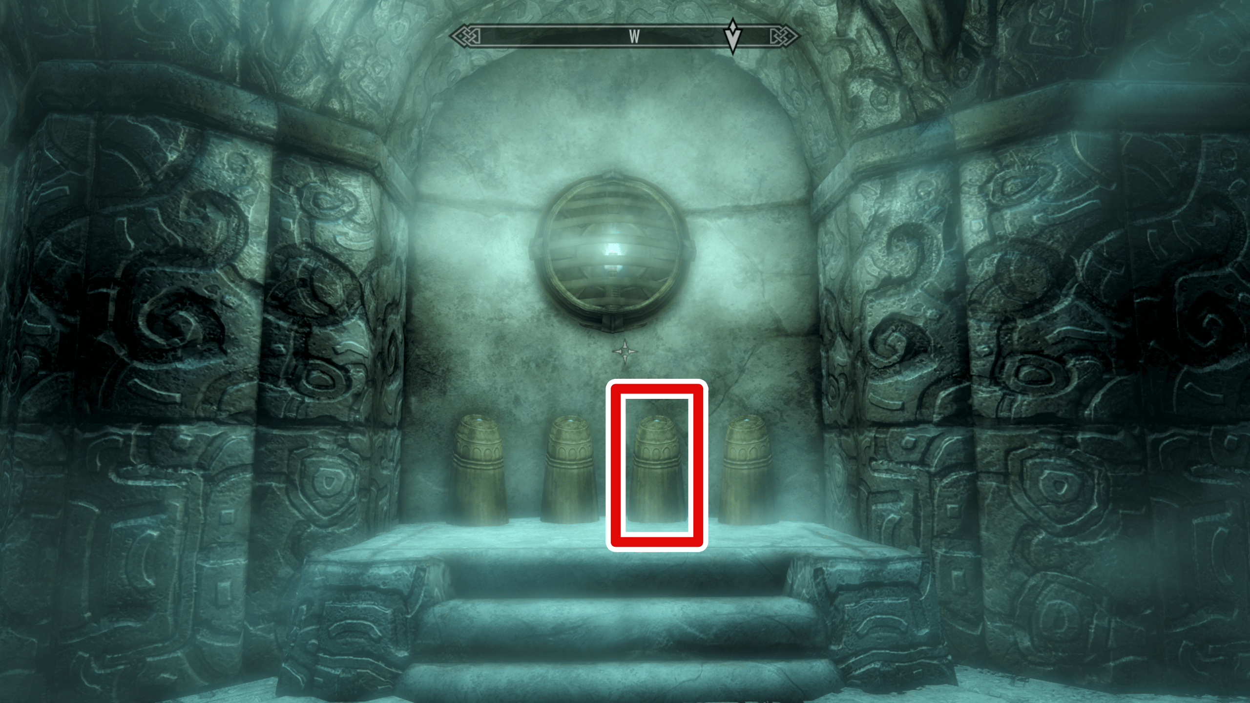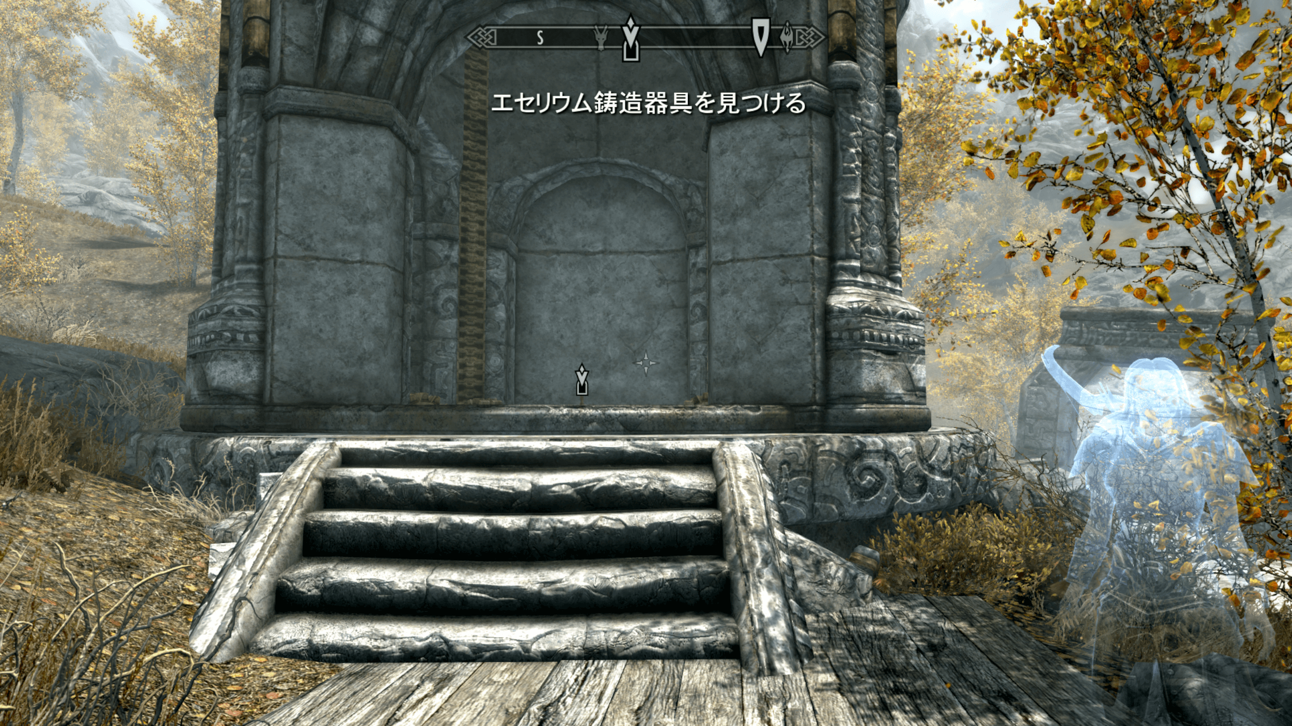 すべてのエセリウムの破片を集めたら、ホワイトランの南にあるビサルフトの遺跡でカトリアと話そう。会話後に、遺跡にある台座にエセリウムの破片をはめ込むとエセリウムの鋳造器具への入口が現れる。