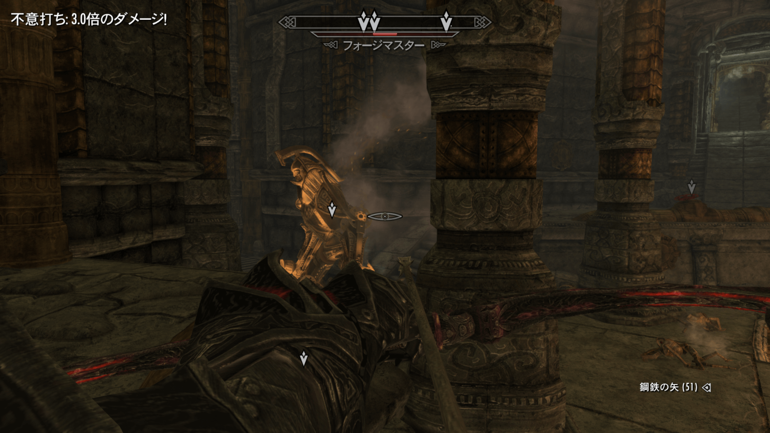 蒸気を止めると、敵が一斉に現れ戦闘になる。敵をすべて倒すと、最後にボス「フォージマスター」が現れる。火炎放射などの攻撃を仕掛けてくるため、防御力が低ければ遠距離から弓などで攻撃しよう。