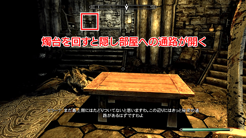 9部屋の暖炉左の燭台を回しで隠し部屋へ入る