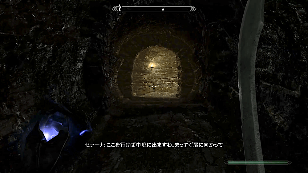 城の外に出たら、外周を時計回り(北西)に向かって進み、地下への扉に向かおう。扉前にはスケルトンが4体配置されているため、近づく前に時間を夜に変えておくと良い。