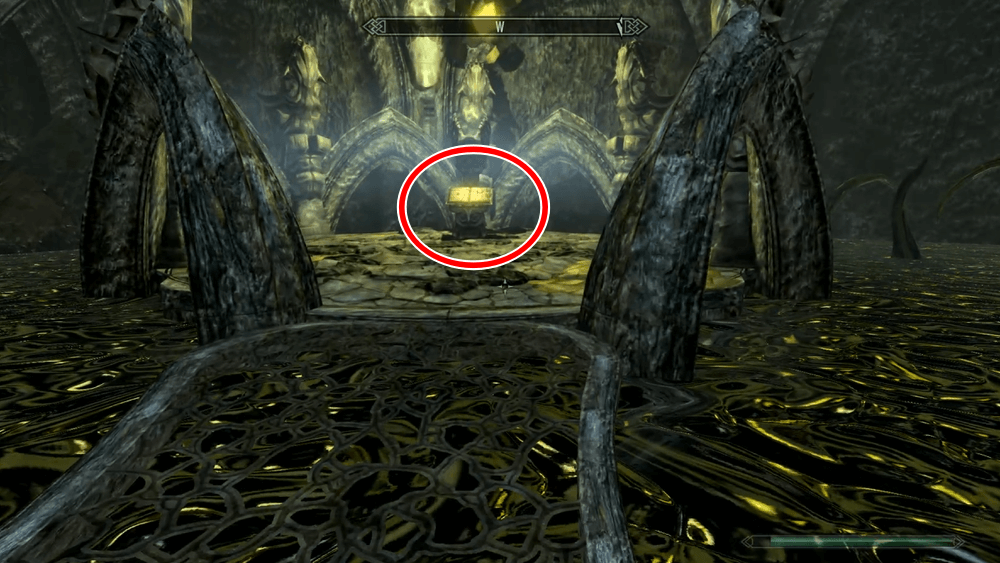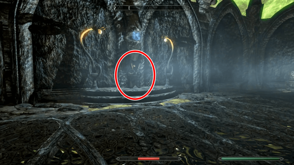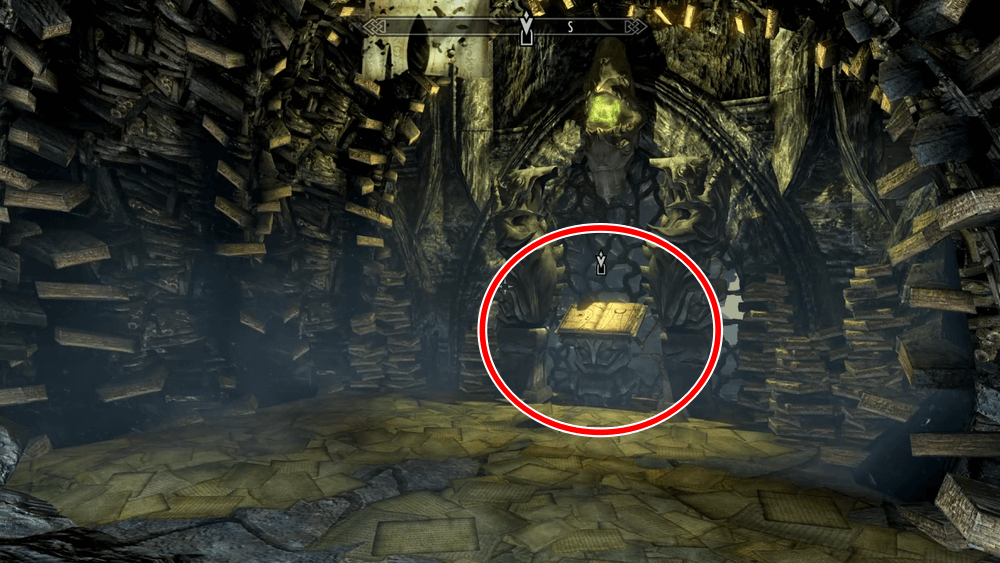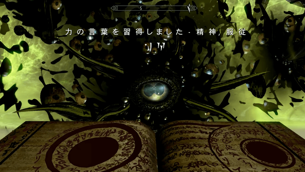 4章に移動したら、目の前のスクライを作動させて、進んだ先で黒の書を読もう。ハルメアス・モラが現れ、会話を進めるとシャウト「服従」の2段階目を習得できる。
