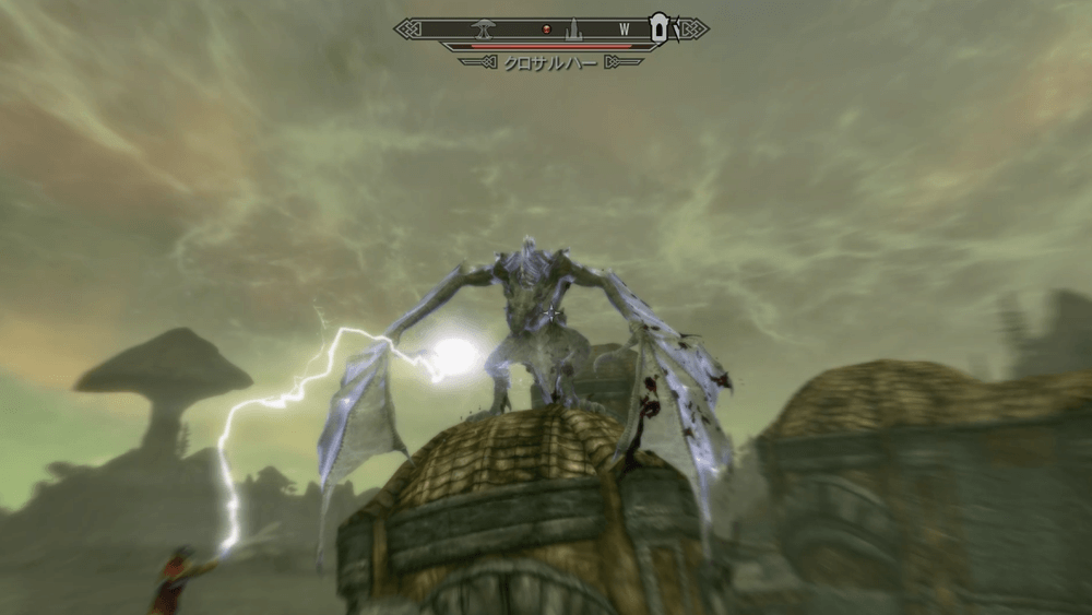 服従の2段階目を習得したらソルスセイムに戻り、チャルダックの外に出てドラゴン「クロサルハー」を倒そう。クロサルハー戦は、同行中のネロスが非常に強力なため、ネロス一人に任せていても倒してくれる。