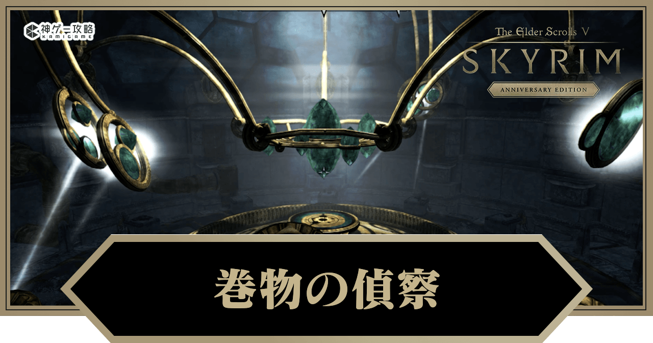 スカイリム(Skyrim)の「巻物の偵察」を解説。巻物の偵察の概要や攻略チャートに加え、報酬やバグの対処法についても掲載しています。