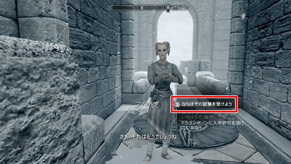 大学入学前に受けるファラルダの試験は、説得やシャウトを用いずに、正規の試験を受けて突破するのがおすすめだ。試験以外の方法で入学した場合、先行クエストの「ウィンターホールド大学に行く」がジャーナルに残り続けるというバグが発生する。