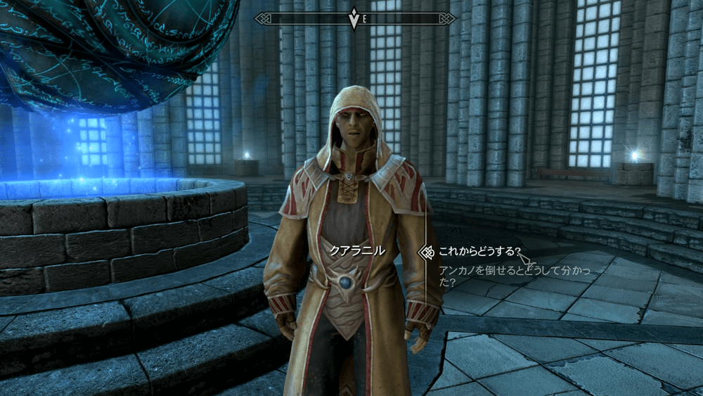 アンカノ撃破後は、トルフディル、クアラニルとの会話イベントを進めてクエストクリア。主人公は新たなアークメイジとして認められ、アークメイジのローブとアークメイジ居住区の利用権が貰える。