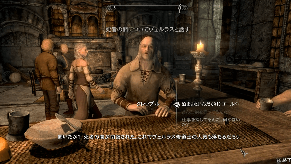 ジャーナルに残るのが気になる人は、必ず宿屋のクレップルから噂を聞いて、導入クエストを発生させてからスタートしよう。PC版の場合は、コンソールに「setstage DA11Intro 20」と入力し、コマンドでクエスト完了扱いにして消す方法もある。