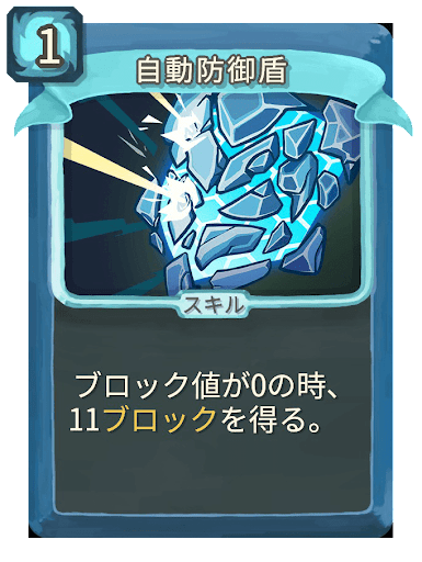Slay the Spire(スレイザスパイア)の自動防御盾の効果を紹介。自動防御盾のタイプやコスト、アップデート後の効果についても掲載しているので、Slay the Spireで自動防御盾を調べる際の参考にどうぞ。