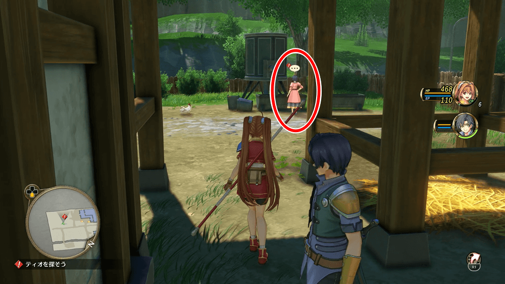 パーゼル農園に着いたら、牧場にいるティオと話そう。依頼内容について尋ねると、ティオの両親から詳しい話を聞くように言われる。