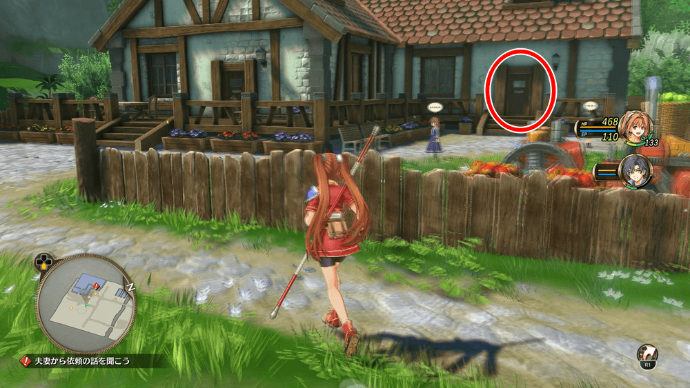 牧場の北西にある家屋に入って、ティオの両親と話そう。魔獣が夜中に出現するという話を聞いた後、イベントを挟んで夜まで時間が進む。