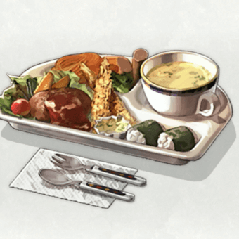 | 使用効果 | 成功料理 全体(非戦闘時):HP3000回復、EP100回復、CP+25珍妙料理 全体(非戦闘時):HP3300回復、CP+30 |