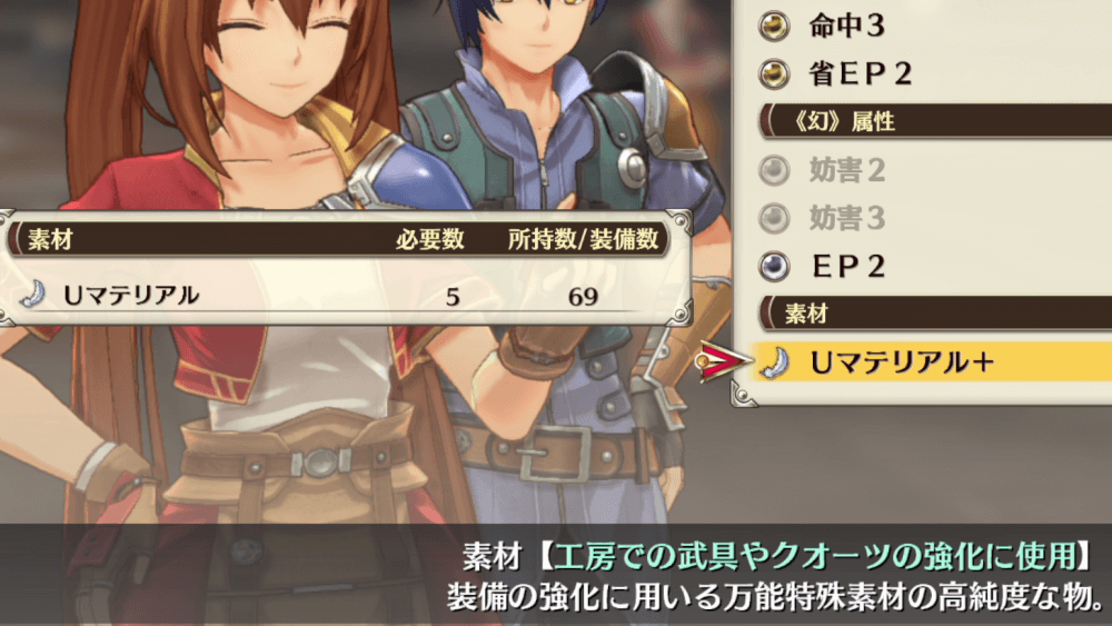 Uマテリアルは装備品の強化に使う