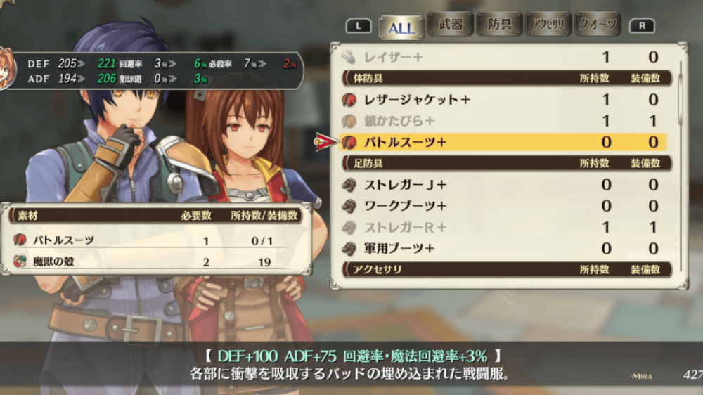 防具の強化は、Uマテリアルではなく、魔物の素材を消費する。Uマテリアルを消費しないため、魔獣を倒していれば簡単に強化可能だ。