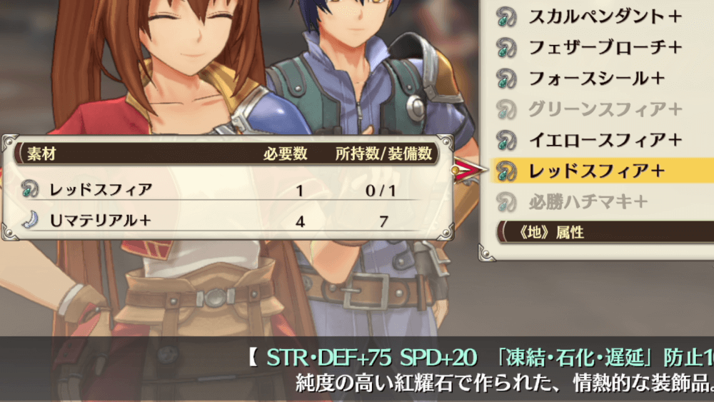 UマテリアルとUマテリアル+は、武器とアクセサリ、クオーツの強化に使う。装備品を強化すれば、効果値が高まったり、新しい効果も付加されるため、装備は積極的に強化するのがおすすめだ。