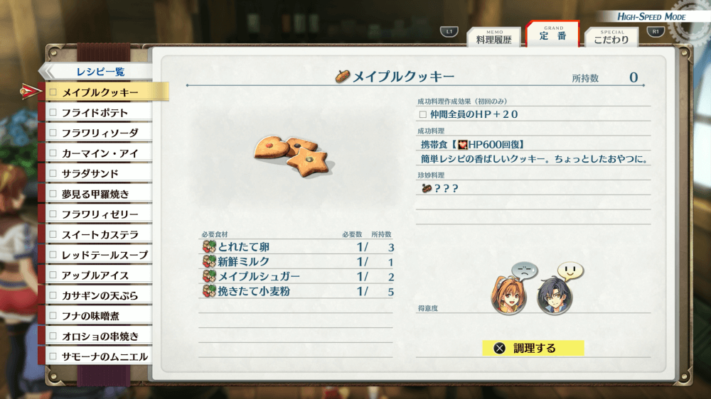 | 料理レシピ | リワード | 遊撃士ランク |