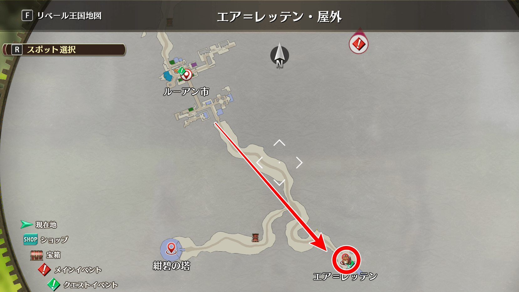 ルーアン市南門を出て、南にまっすぐ進むとエラ=レッテンに着く。旅行者の説得ではBP選択肢が出現するため、エラ=レッテンに入る前にセーブをしておくのが良い。