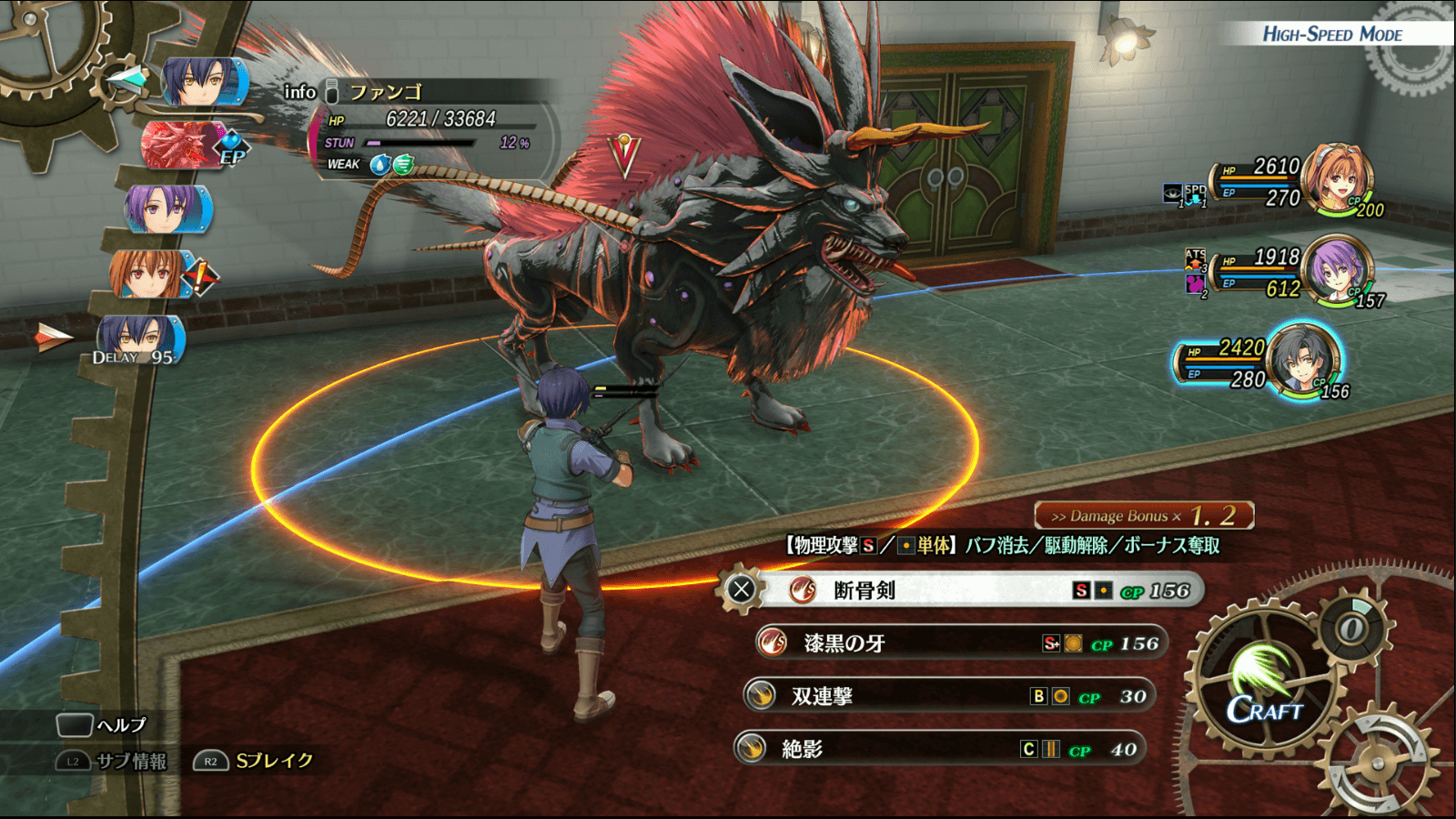 片方を倒して断末魔が発動したら、ヨシュアのSクラフト「断骨剣」でバフを消そう。バフを放置したまま攻撃されると、大ダメージを受けて倒される可能性が高くなる。