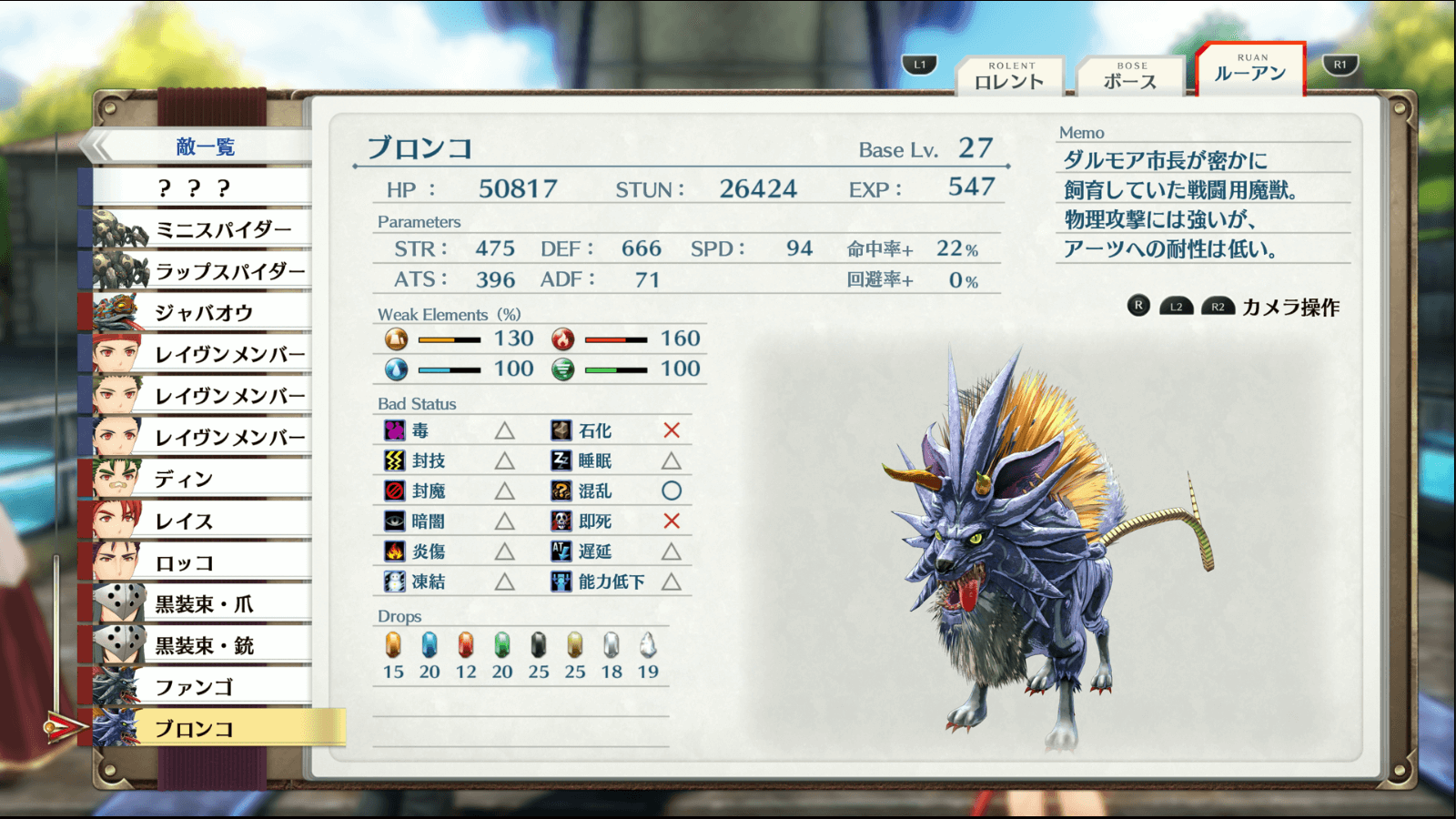 ファンゴはSTRが高く、攻撃を受けると大ダメージになりやすいので、なるべくカオスブランドを当てて混乱を維持しよう。また、ファンゴが混乱している間にブロンコにも混乱を入れておくと、より楽に攻略できる。