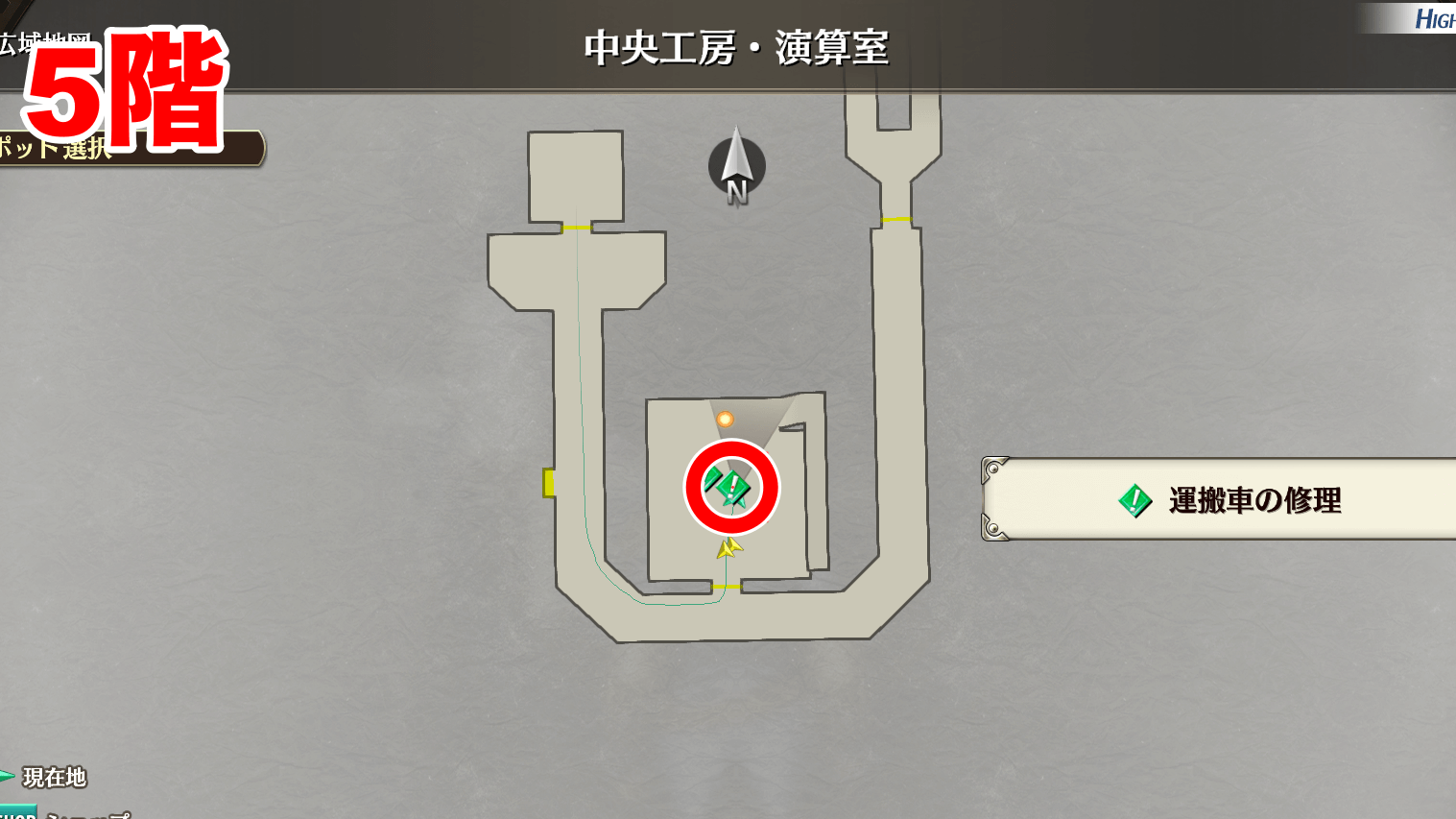 マップ 外観 中央工房3階の設計室でプロメテに話しかける。プロメテとの会話が終わったら、5階の演算室に向かおう。