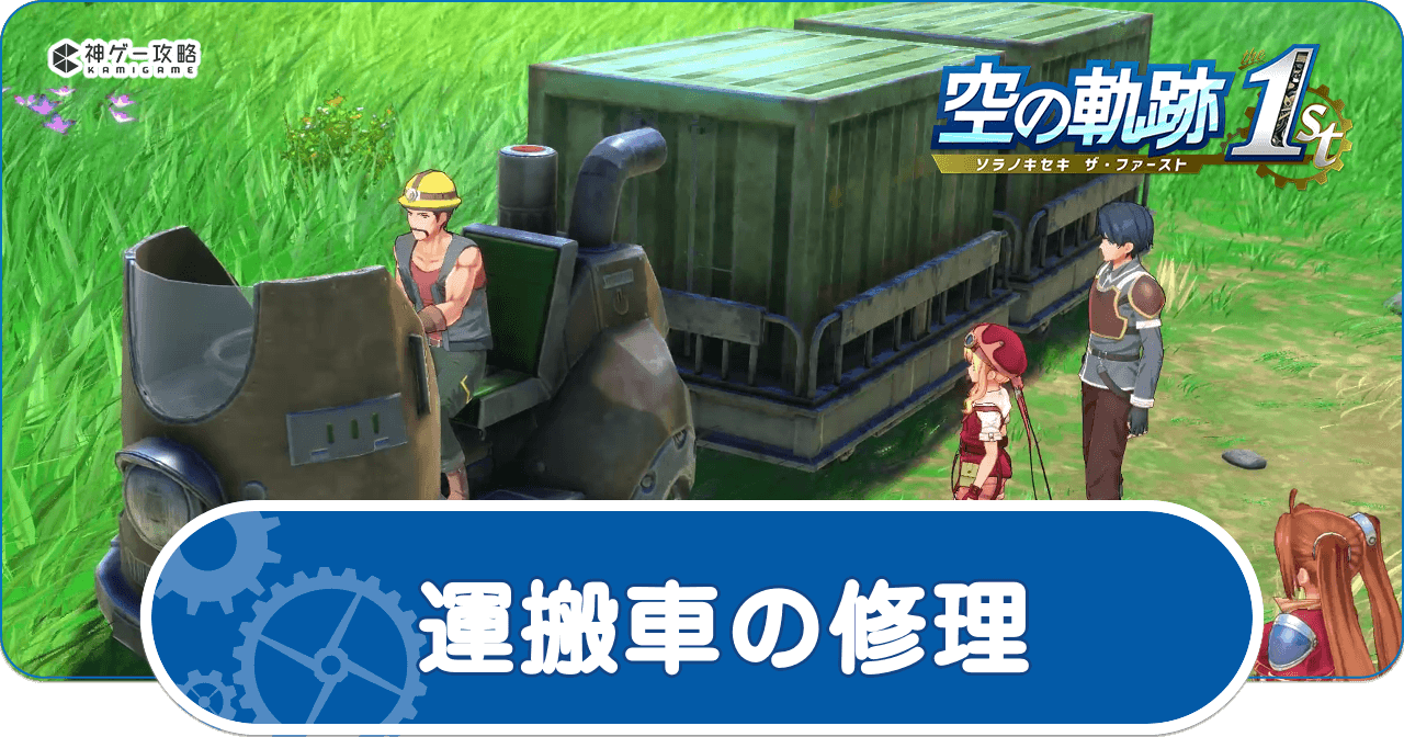 空の軌跡 the 1st のサブクエスト「運搬車の修理」を解説。空の軌跡リメイクの運搬車の修理の攻略チャート、運搬車の修理の場所、受注時期や受注場所、失敗条件や報酬について掲載しています。