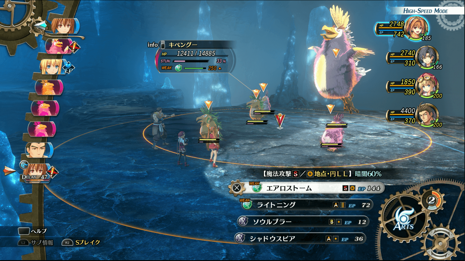 風属性の範囲アーツやティータの「スモークカノン」で、敵に暗闇状態の付与を目指しながら攻撃をするのがおすすめだ。取り巻きは数が多く、暗闇を付与しておけば通常攻撃でダメージを受ける機会を減らせる。