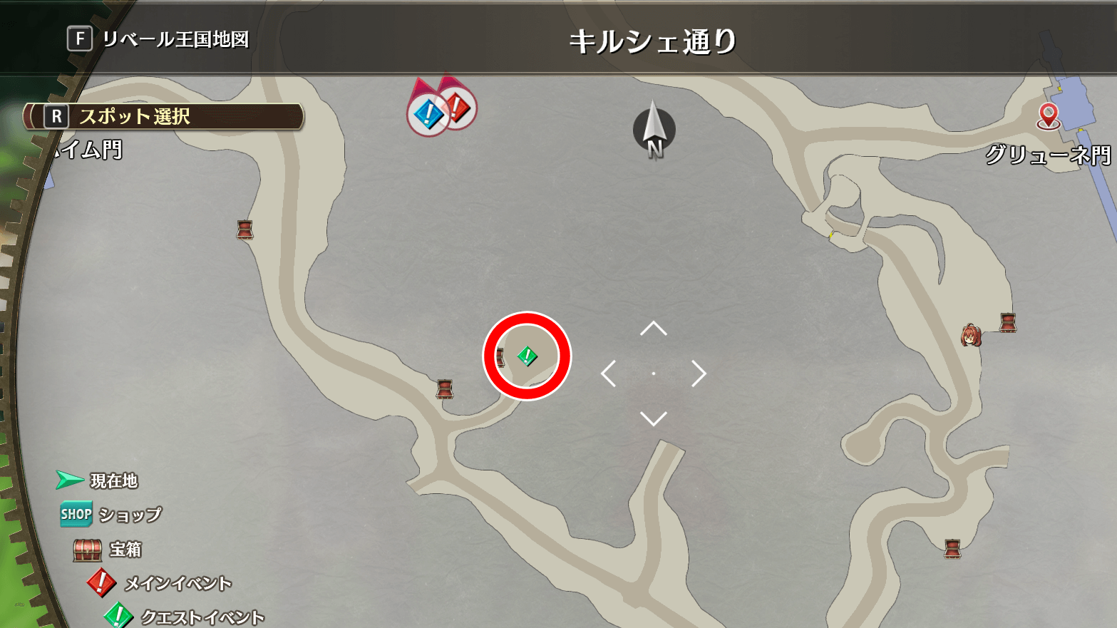 キルシェ通りとエルベ周遊道に出現した敵を全て倒す。1回の戦闘ごとにホテルで休憩して、HPとEP、CPを回復させてから次の敵を倒しに行こう。
