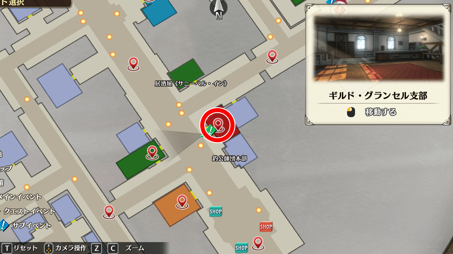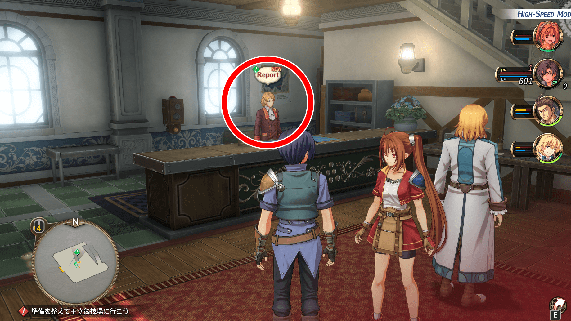 魔獣の群れの掃討を受注したら、ギルドの受付でエルナンと会話しよう。討伐に向かう前に、グランセル市内で武器やクオーツを整えておくのがおすすめ。