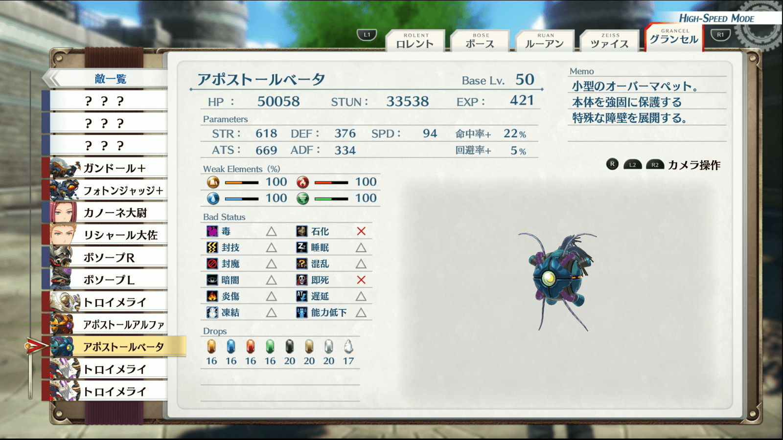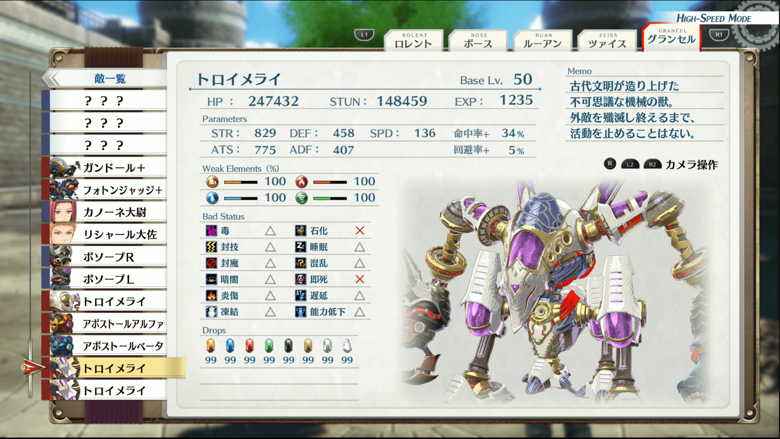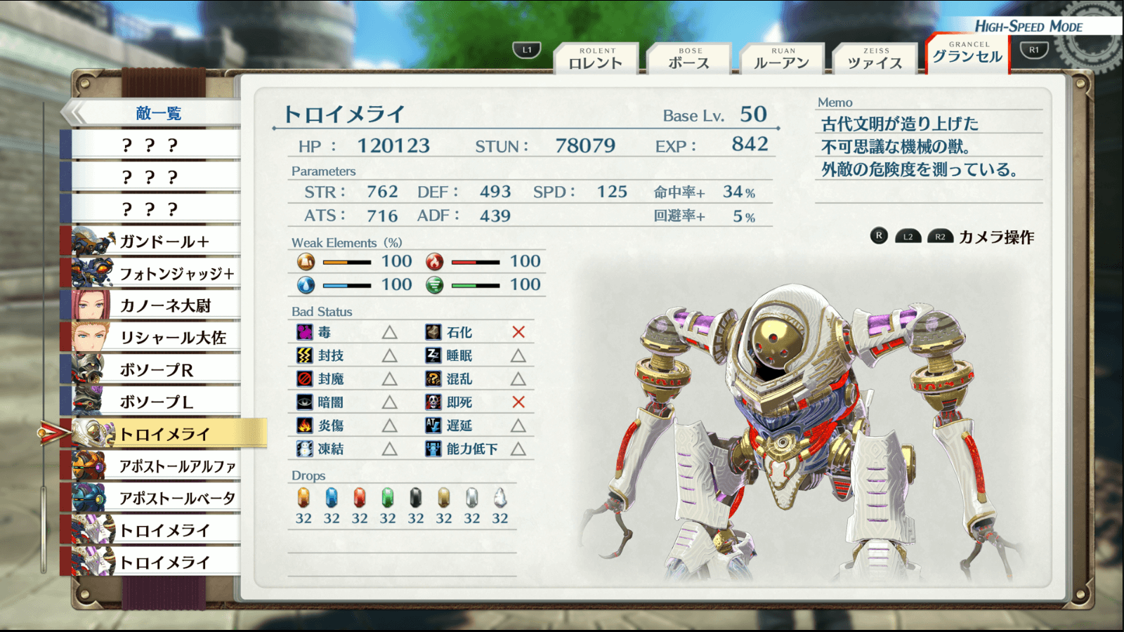 トロイメライ1戦目は、ボソープを巻き込んだ範囲攻撃でトロイメライを削ろう。ボソープは物理か魔法に高い耐性を持っているが、トロイメライはどちらの防御値も変わらない。よって、ボソープRには物理攻撃、ボソープLには魔法攻撃でトロイメライを巻き込んで戦うと良い。
