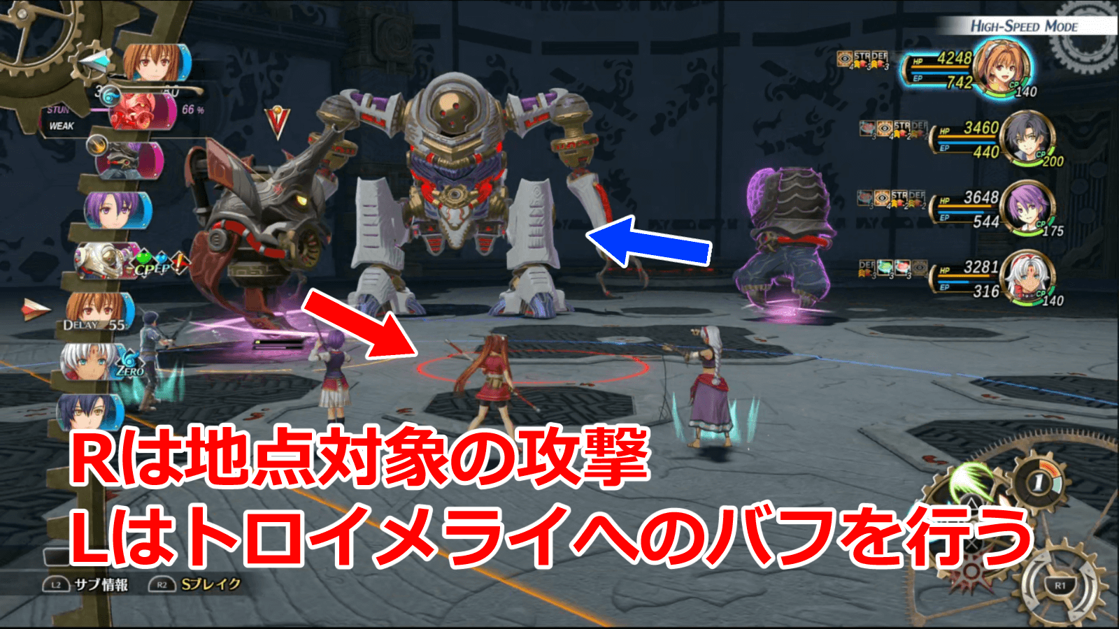 ボソープLとRを倒してトロイメライだけになったら、2戦目に備えてEPやCP、HPを回復しておこう。カルネイジブーストとバスターレーザーにさえ対応できれば1戦目では苦労する部分はほぼないため、最後の回復と調整ができる。