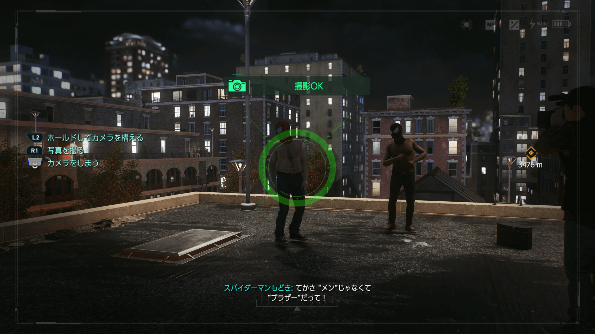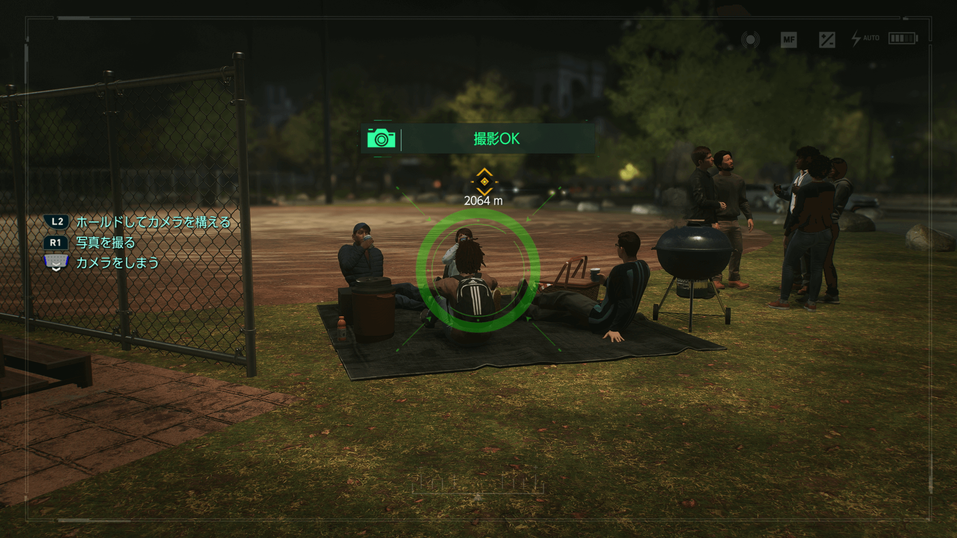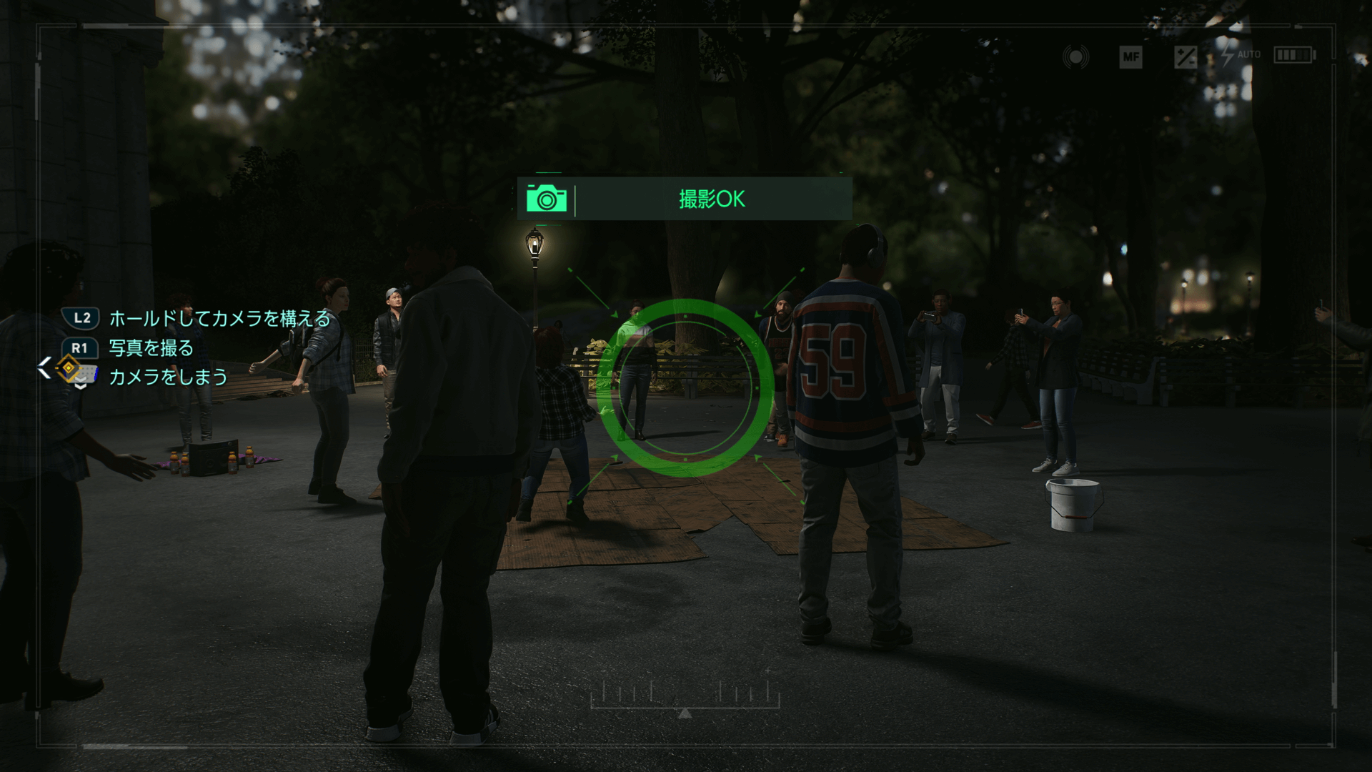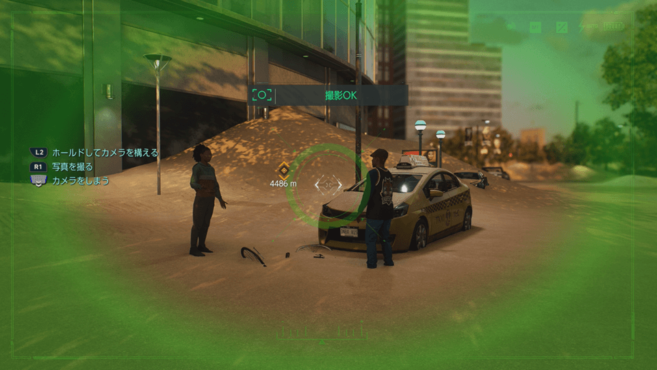コントローラーのパッドを上方向にスライドすると、フォトモードに移行できる。フォトモードの状態で、L2とR1を同時に押すと写真が撮れる。フォトモードを終えたい場合は、パッドを下方向にスライドしよう。