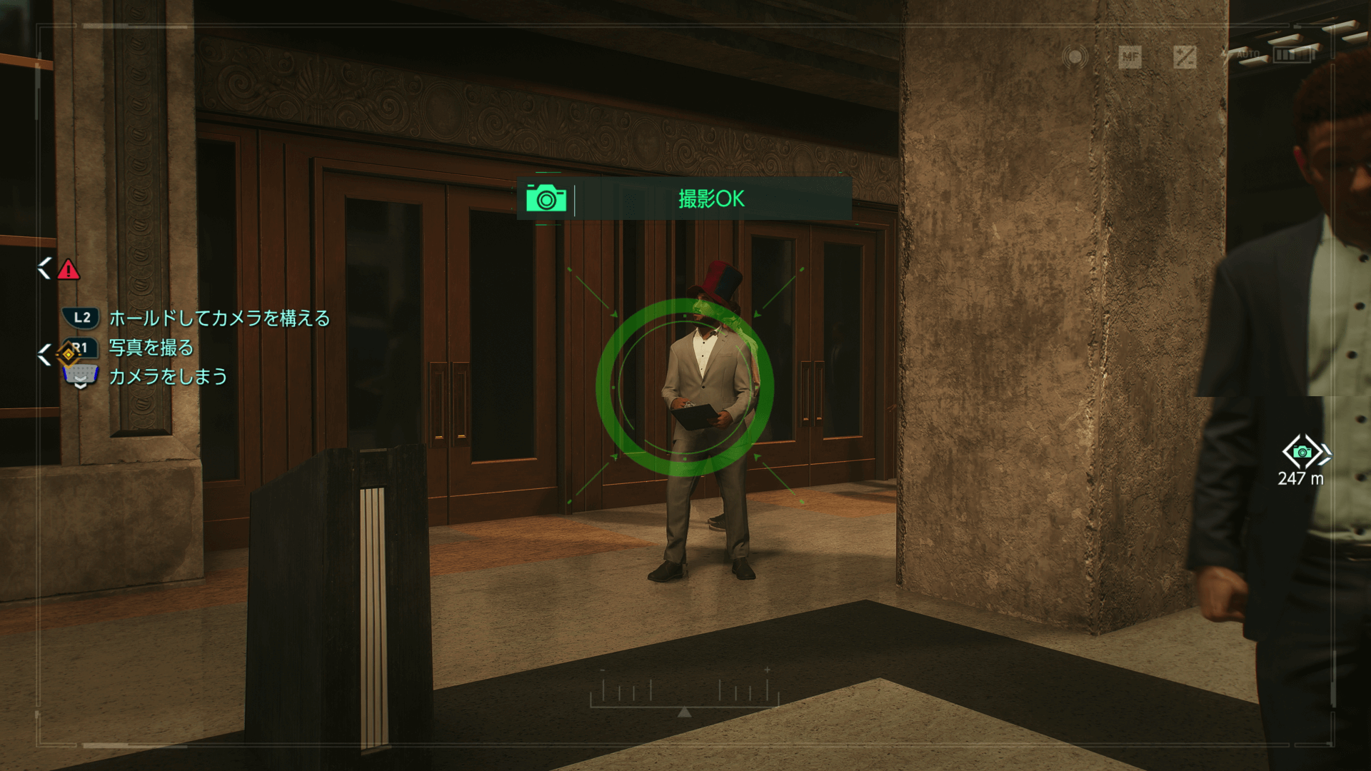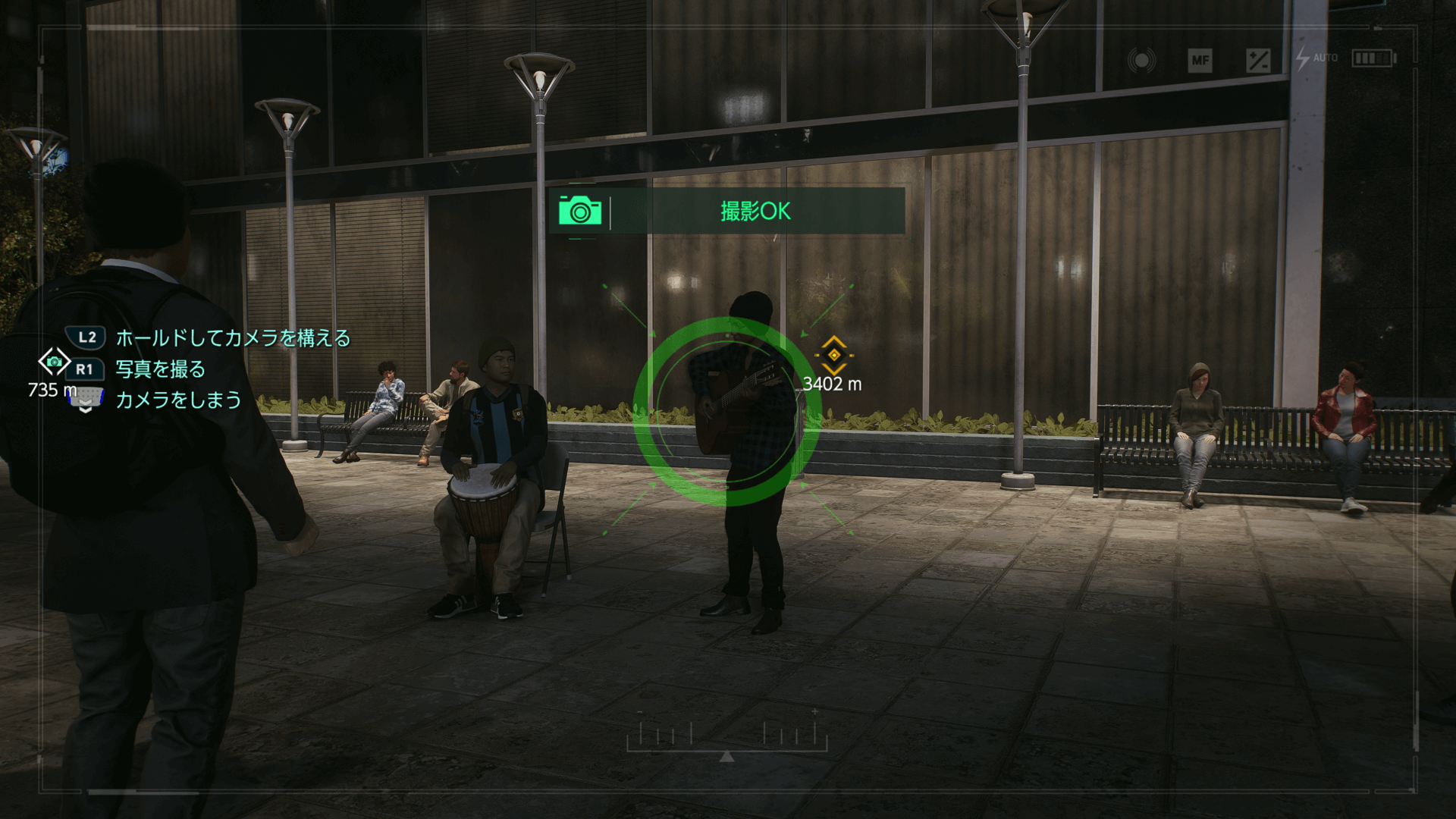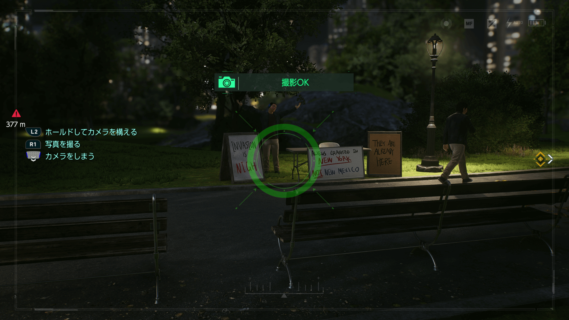 コントローラーのパッドを上方向にスライドすると、フォトモードに移行できる。フォトモードの状態で、L2とR1を同時に押すと写真が撮れる。フォトモードを終えたい場合は、パッドを下方向にスライドしよう。