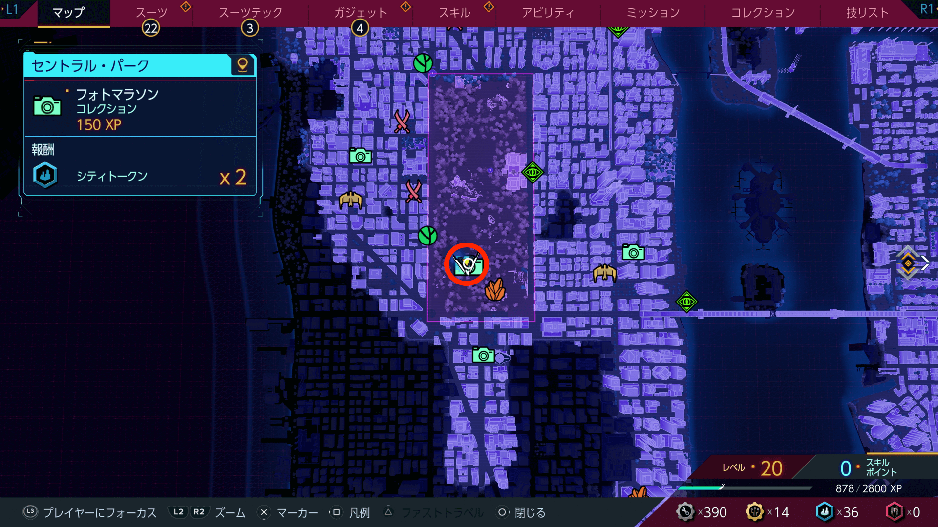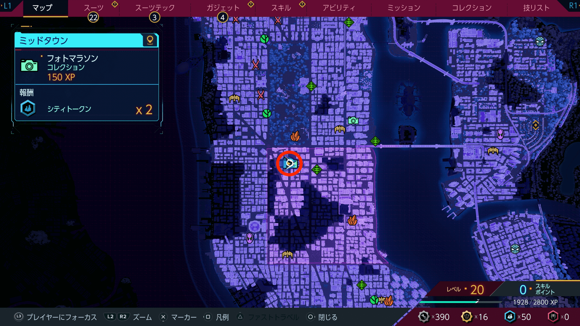 フォト・マラソンをすべて集めると、トロフィー「ニューヨーク、ニューヨーク」を入手できる。マップ埋めも並行してできるため、写真を撮りつつ探索しよう。