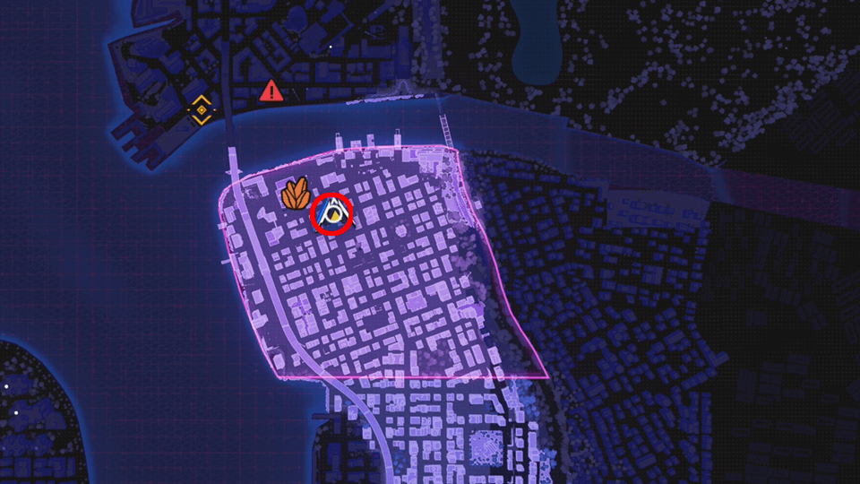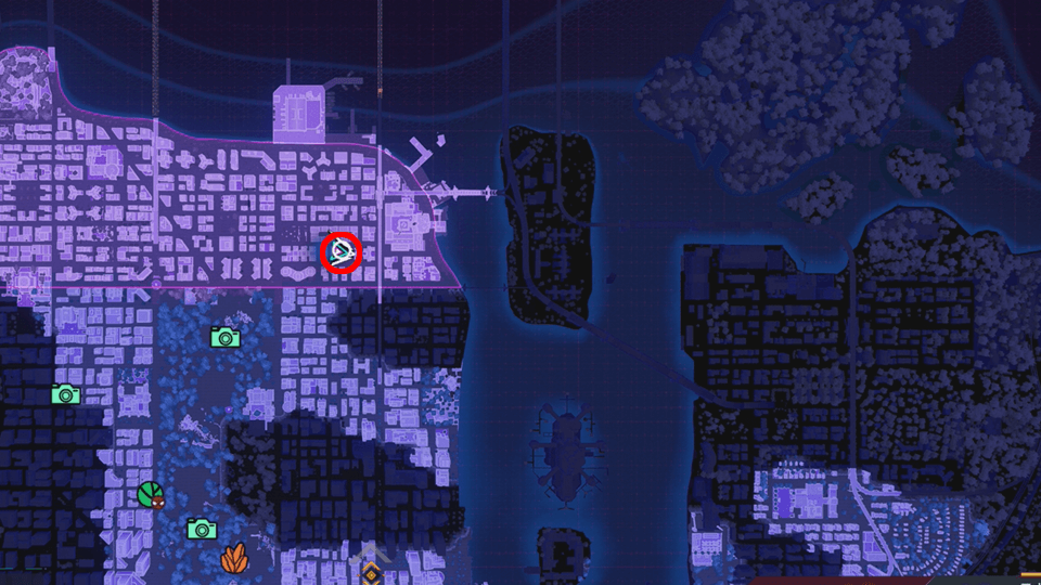 高所から見た時に、緑色に強調されている場所にはフォト・マラソンがある。付近にあるフォト・マラソンを探す際はビルの上などから探そう。