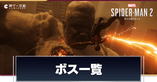 スパイダーマン2(Marvel's Spider-Man 2)のボスを解説。作中で戦えるボス一覧はもちろん、ボスの倒し方のコツについても掲載しているため、スパイダーマン2の参考にどうぞ。