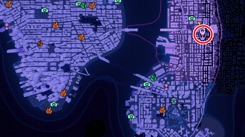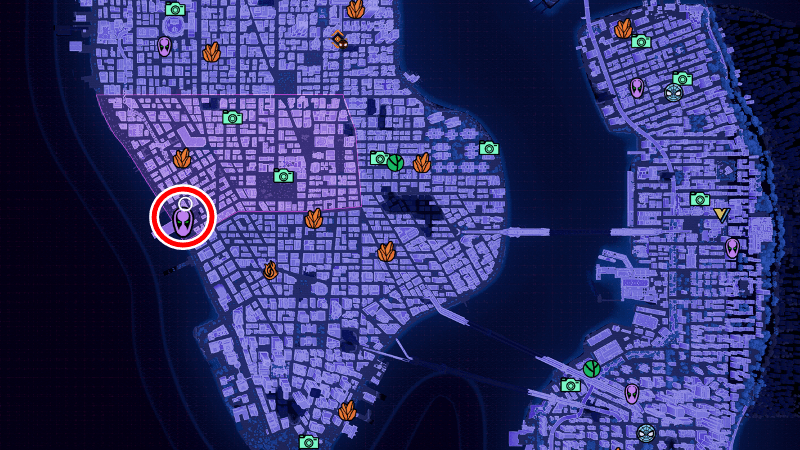 見取り図を調べたら、ハーレムの東にあるマイルズのアパートへと行こう。アパートの場所は、水色のサイドストーリーマーカーが出るため、目印にして向かうと良い。