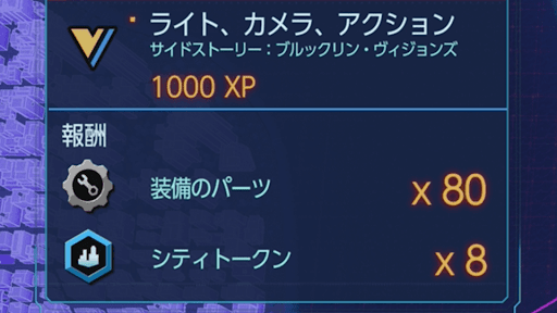 ブルックリン・ヴィジョンズは、クリアするとシティトークンを入手できる。シティトークンはスーツテックやガジェット、スキルなど様々な能力強化で使えるため、集めておこう。