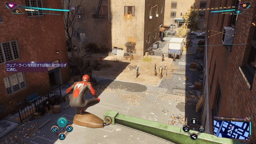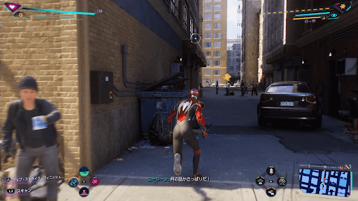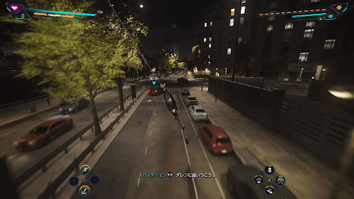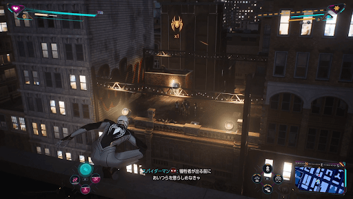 トラックを調べたあとに、箱の上にあるスマホを調べる。すると、次の目的地が表示されるため、スイングで移動しよう。