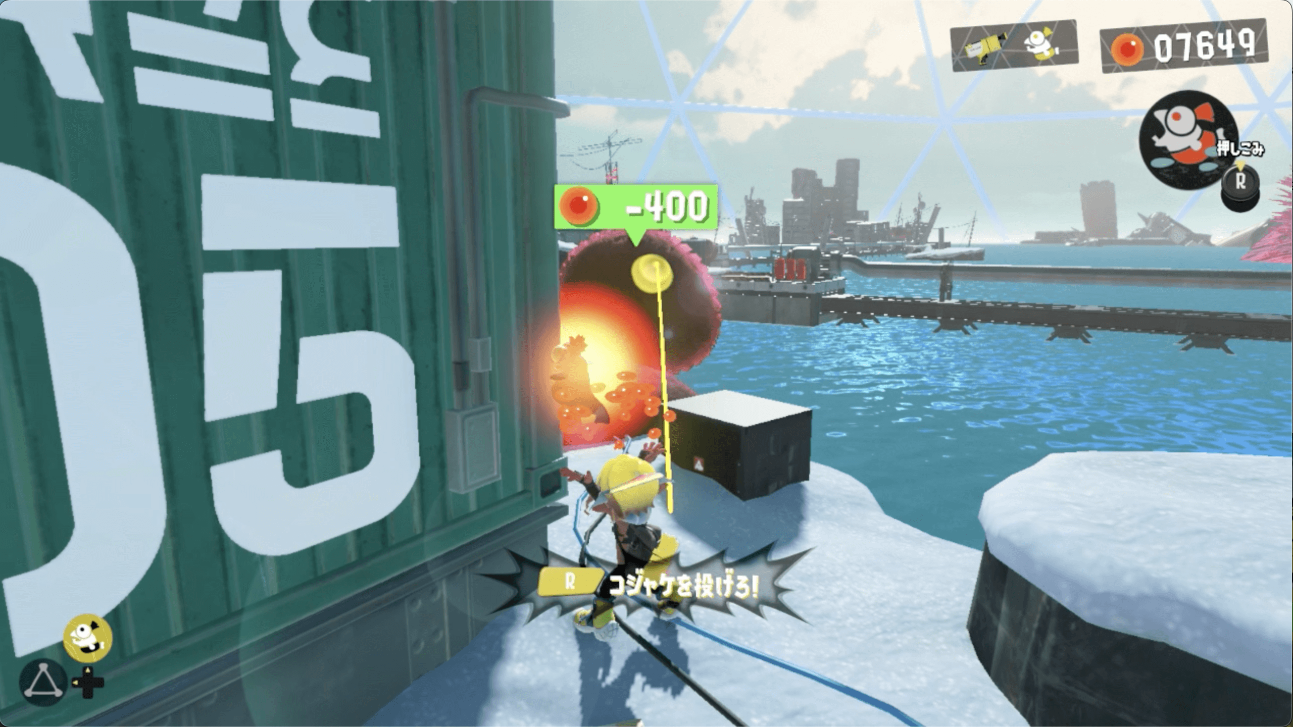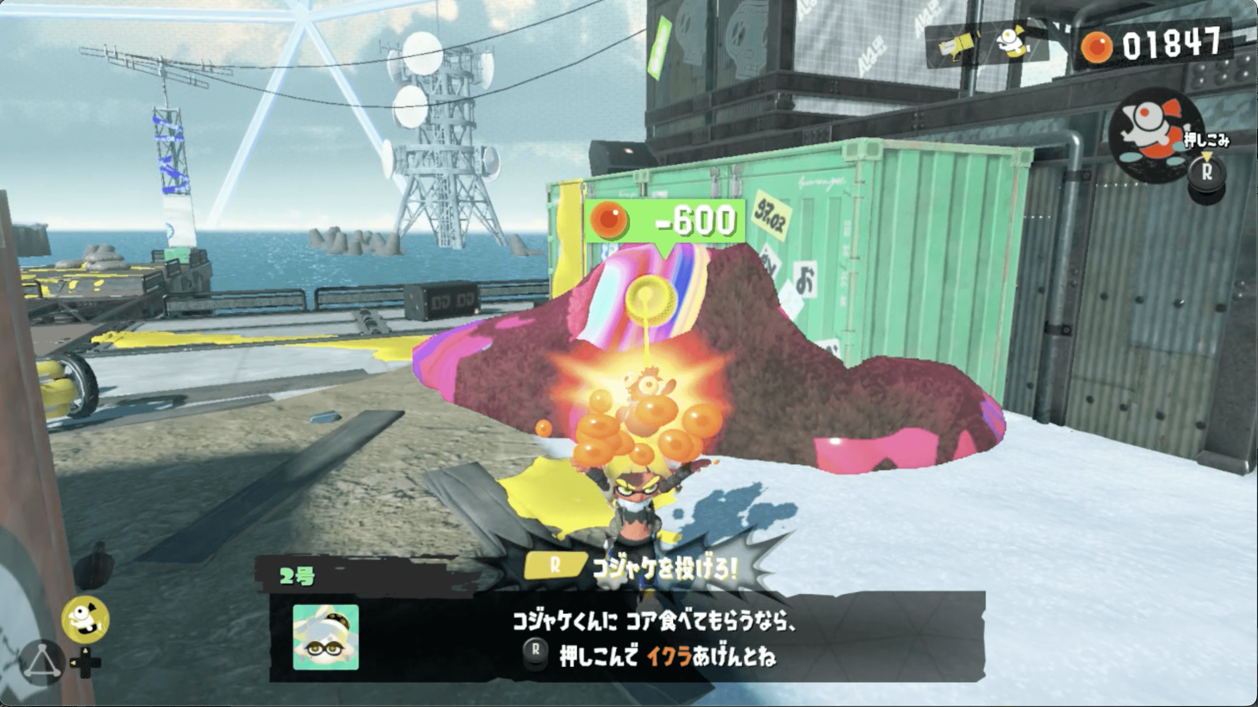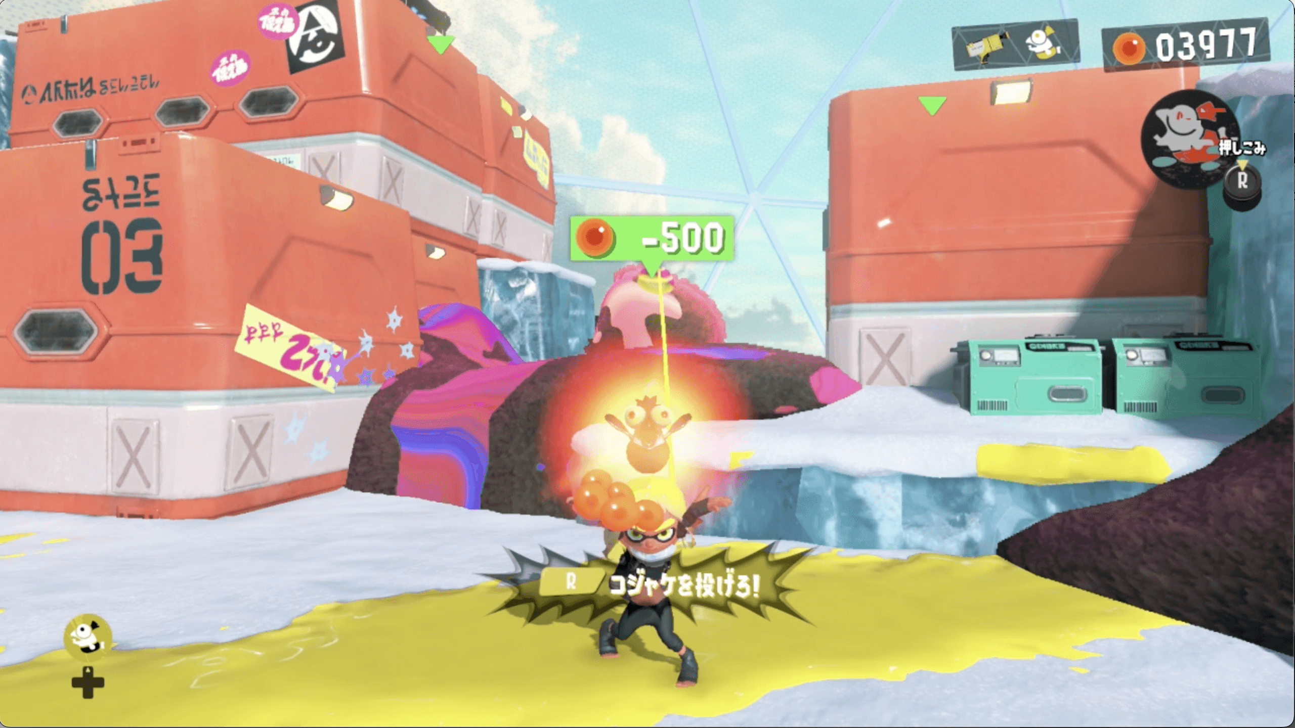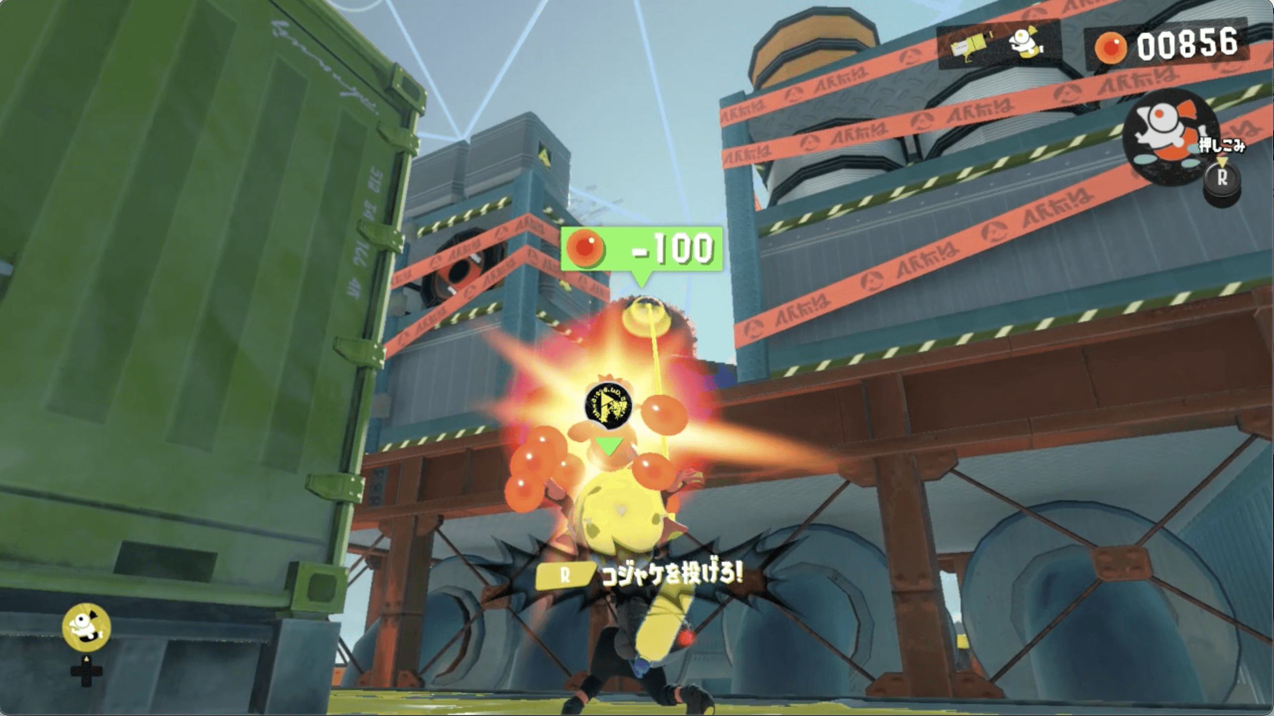 コンテナにかかっているケバインクをイクラ600個で消す |