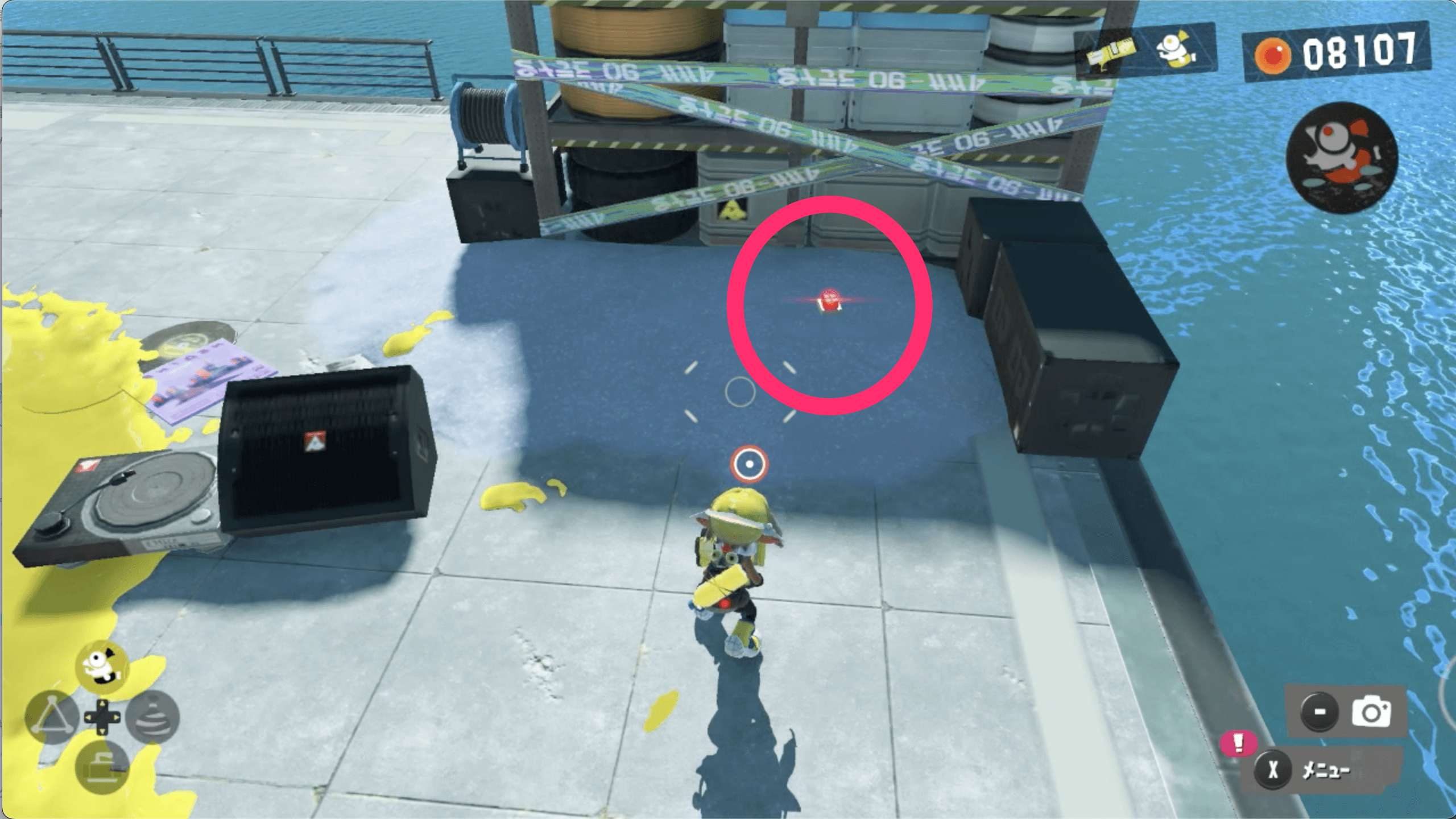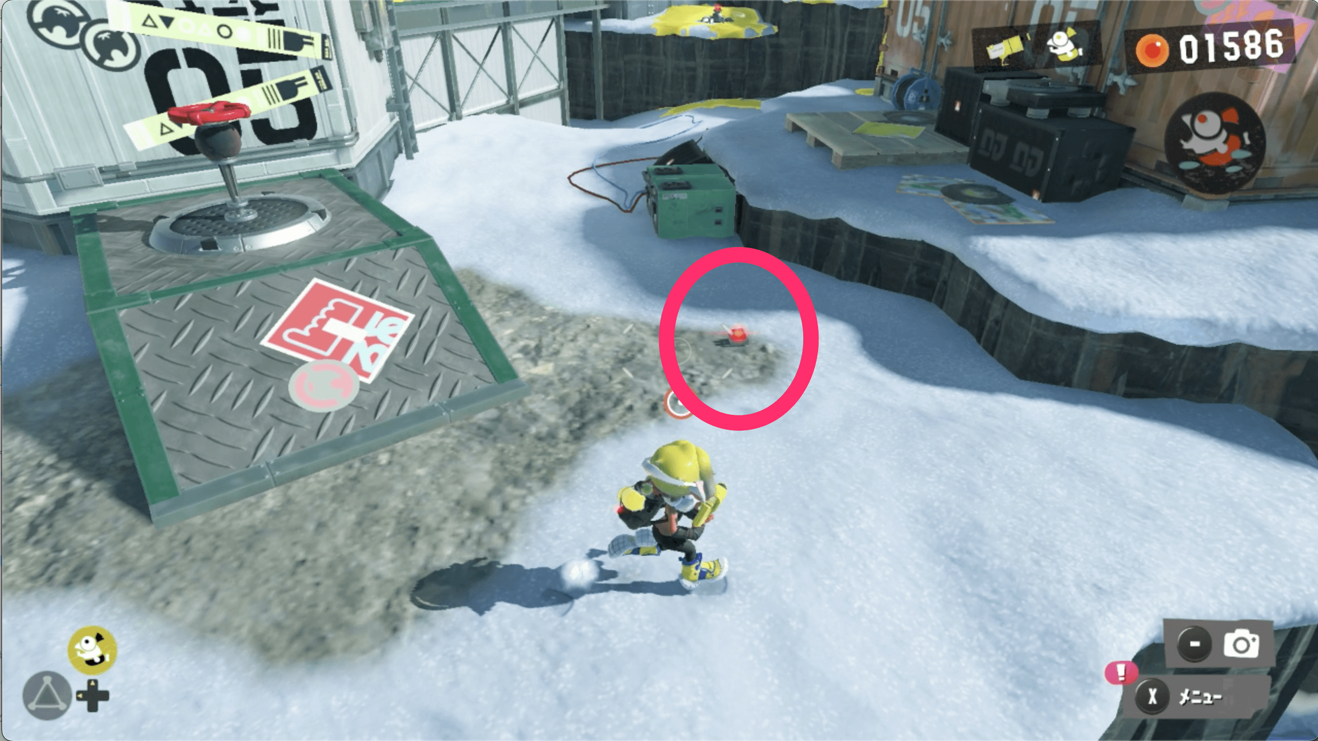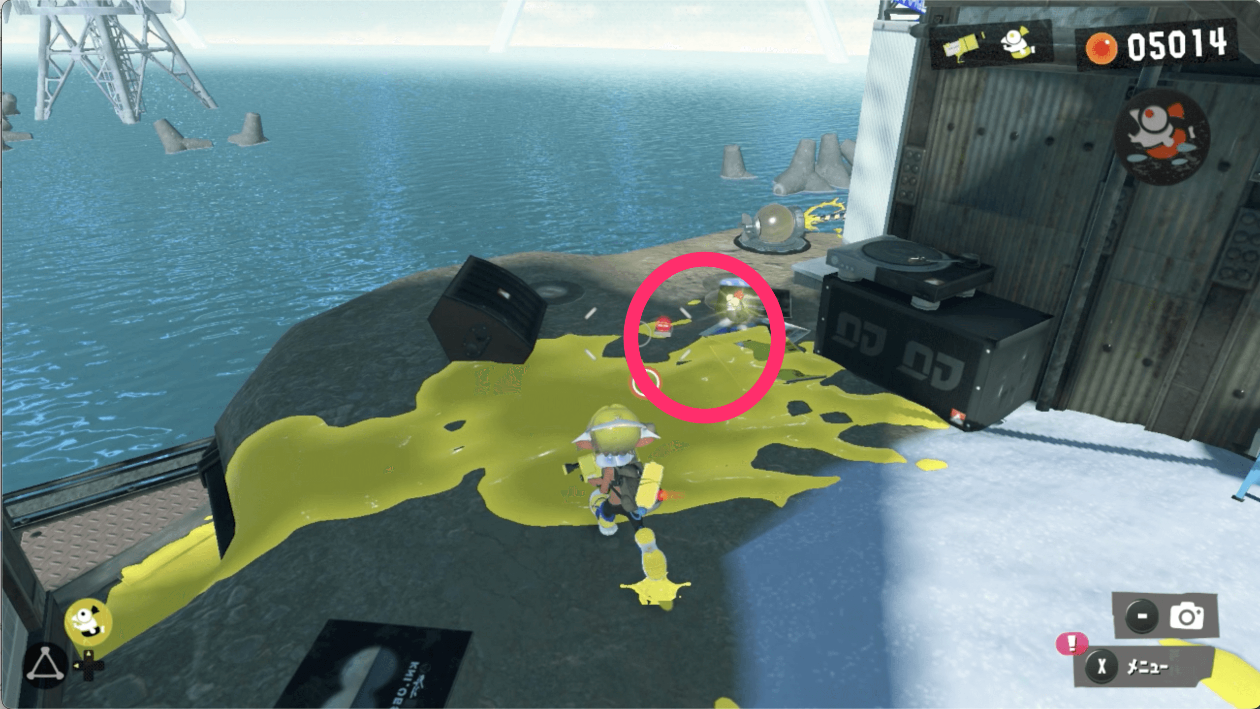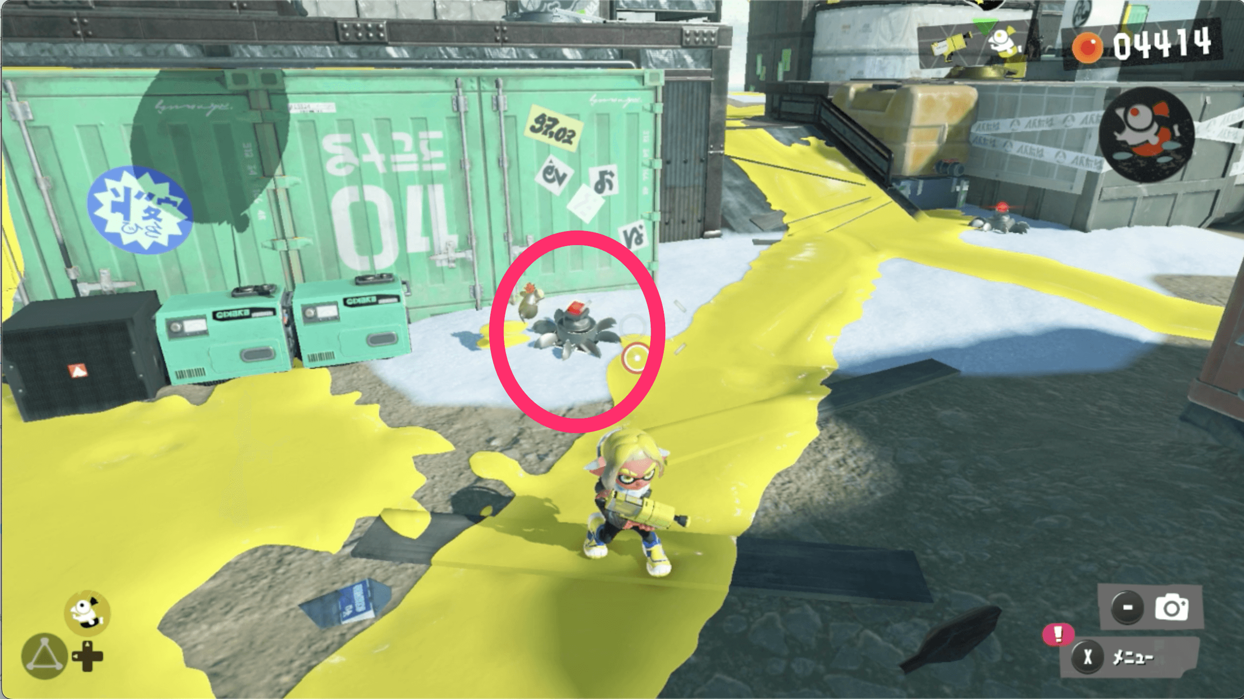 サイト2のゴールドディスクは、見えているネジのほかに隠されたネジからも入手できる。コジャケの反応を見て、隠されたネジを見つけよう。