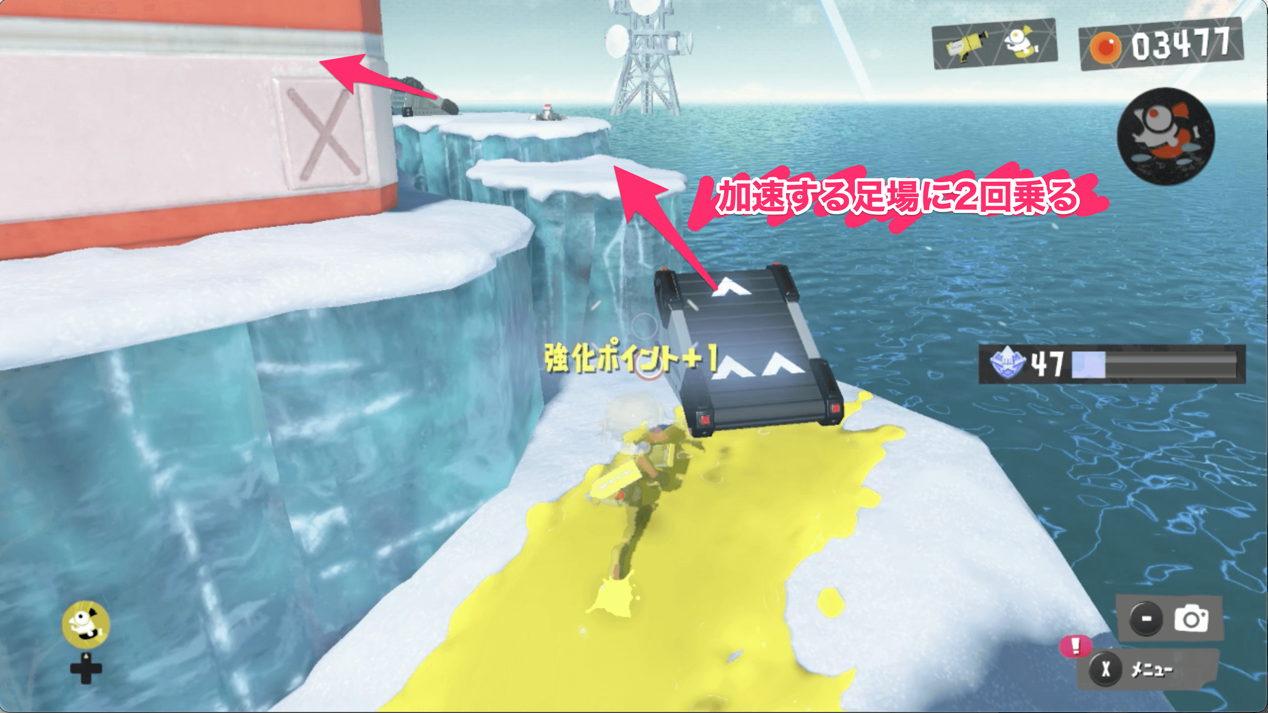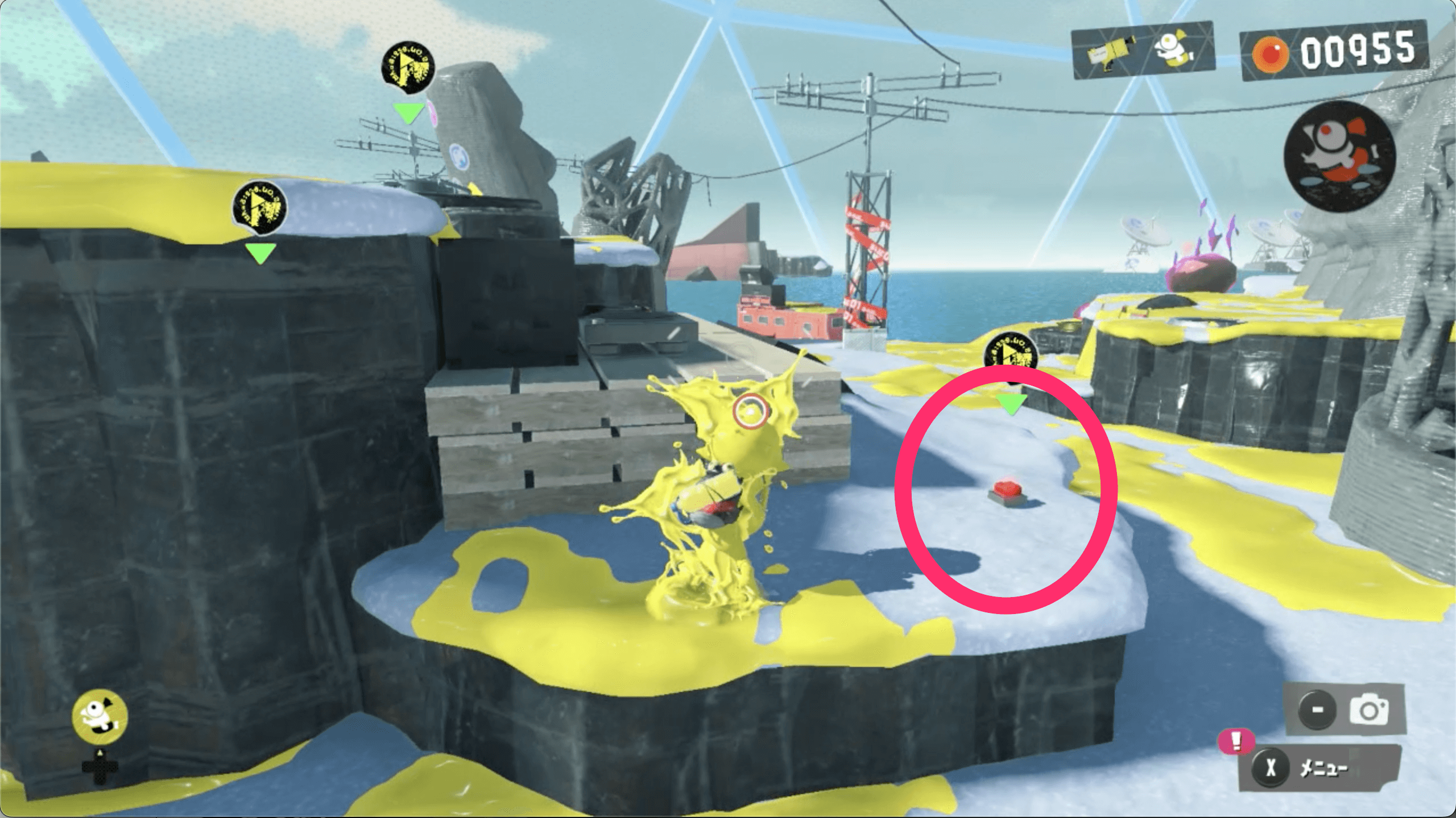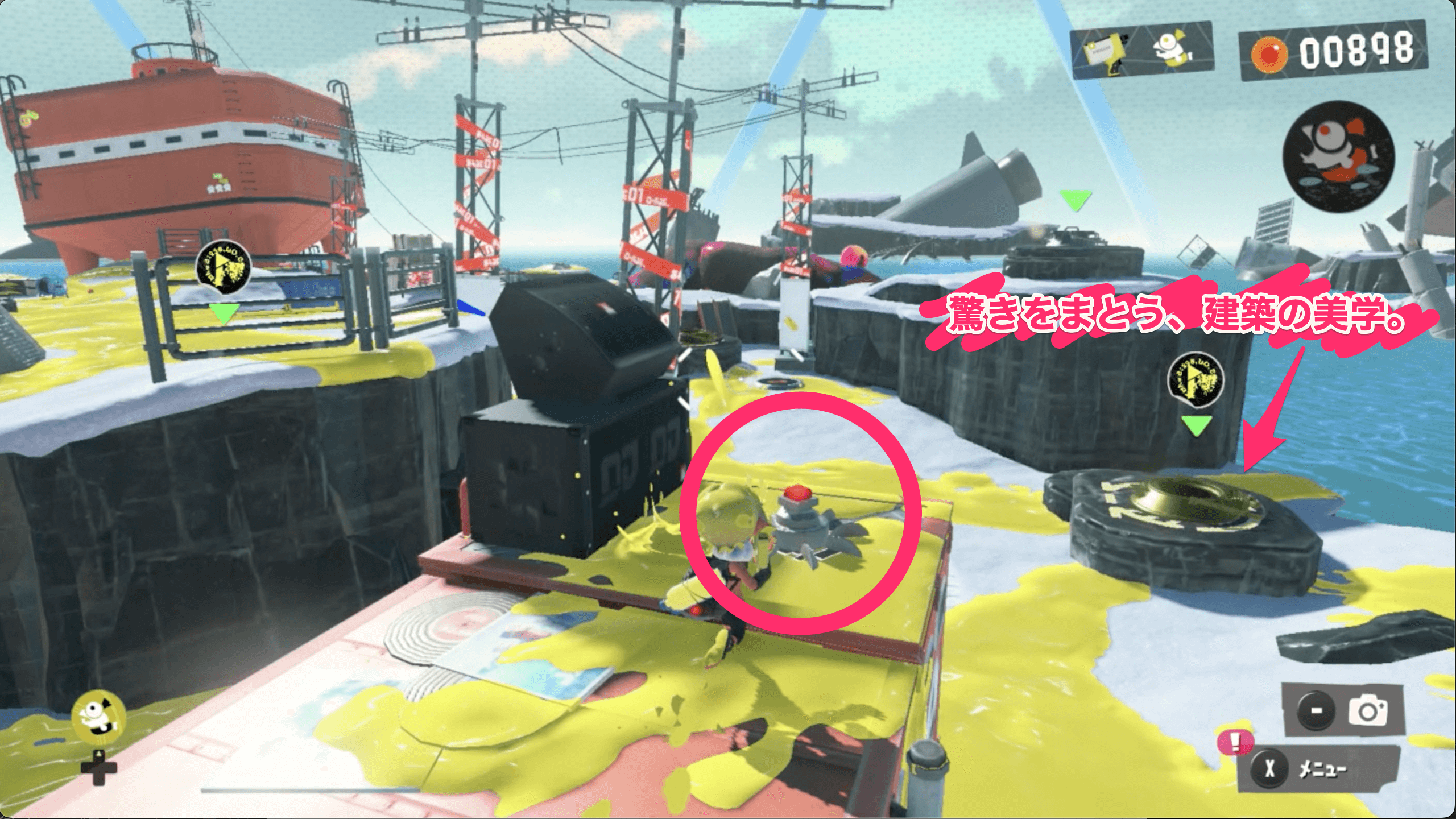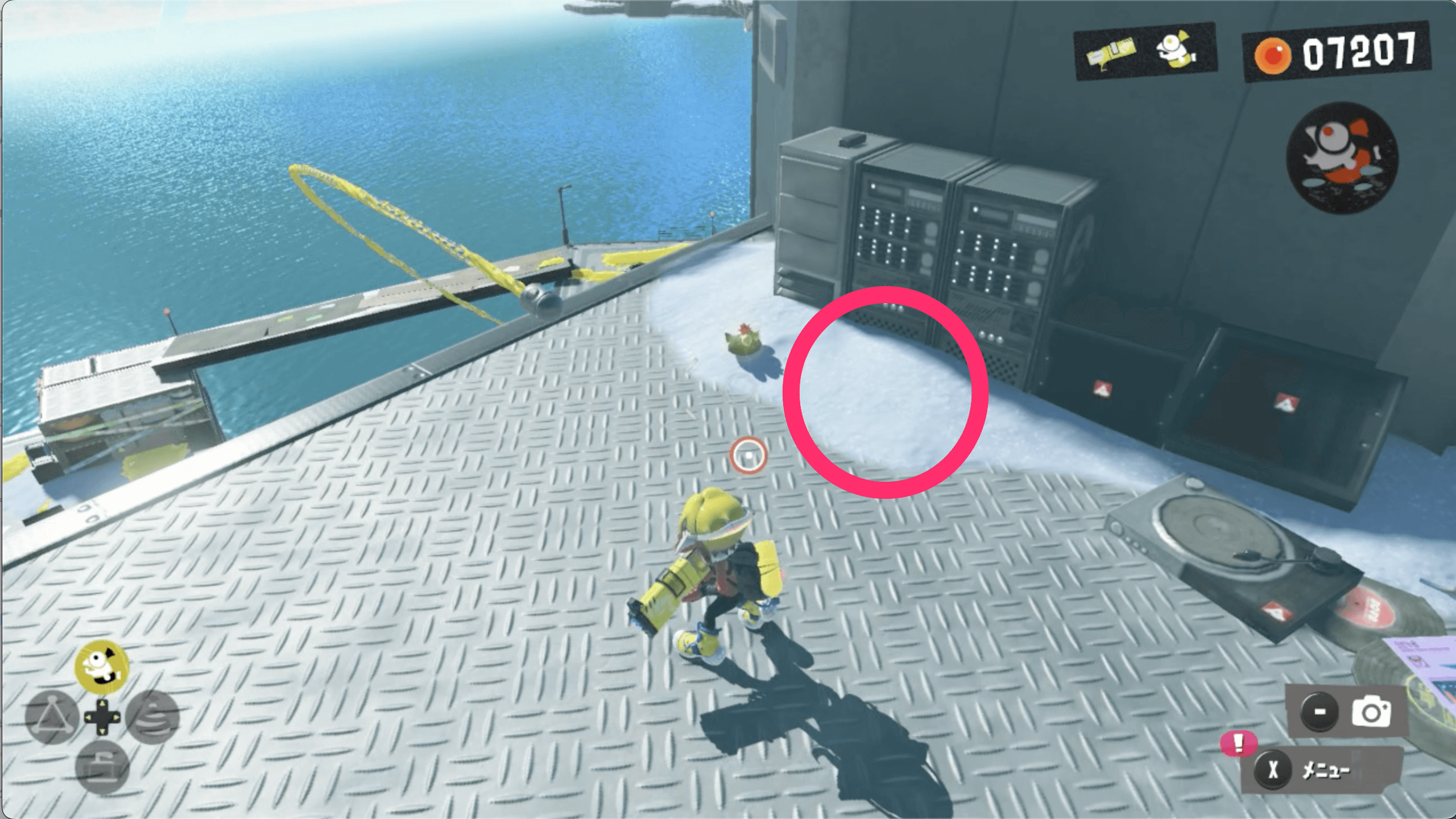 サイト2のゴールドディスクは、見えているネジのほかに隠されたネジからも入手できる。コジャケの反応を見て、隠されたネジを見つけよう。