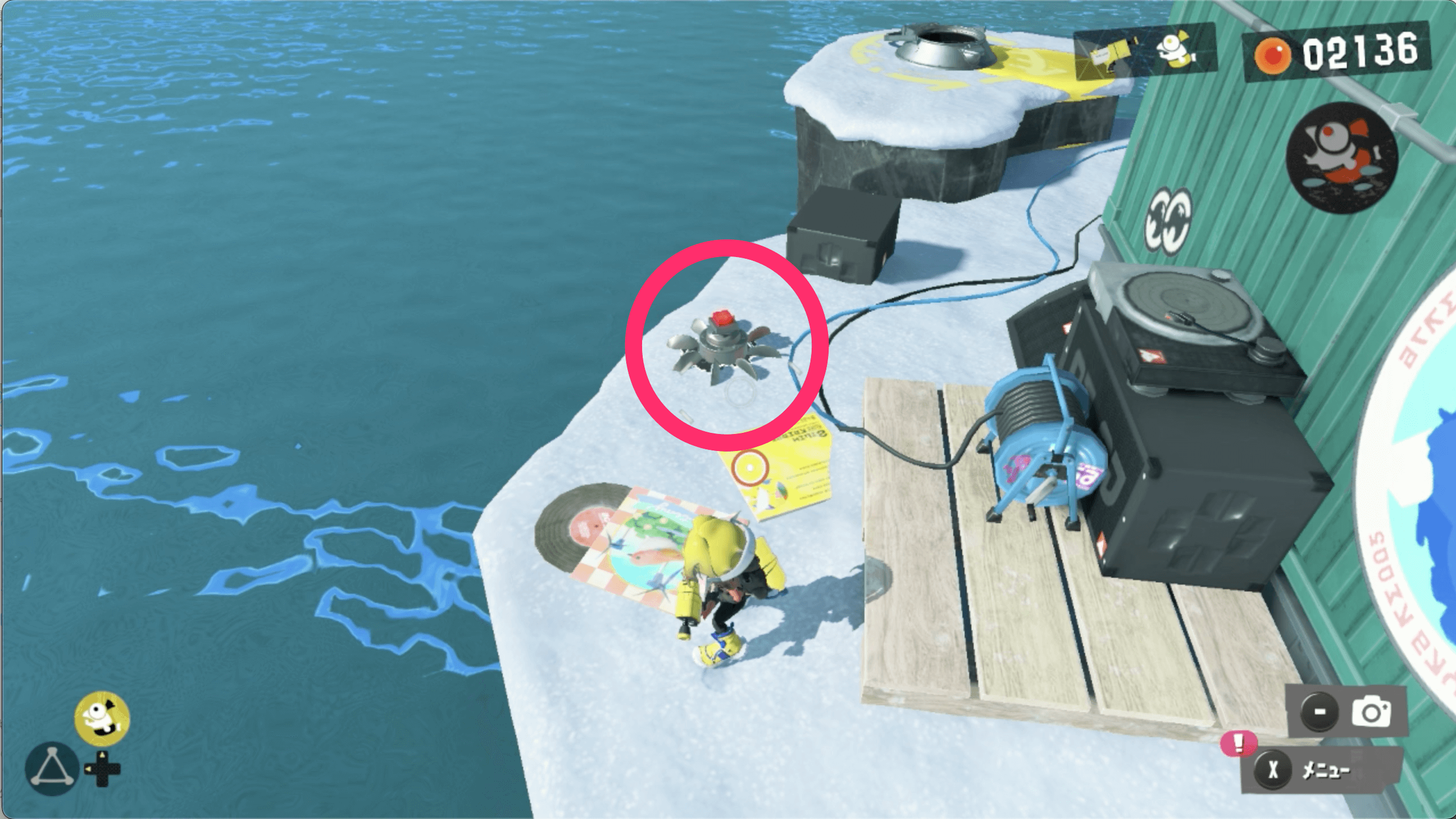 きょじゅうポッドの間にあるケバインクをイクラ500個で消す |
