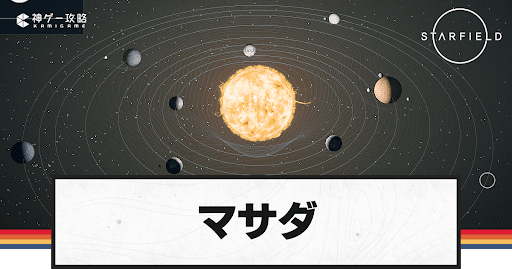 Starfield(スターフィールド)の星系「マサダ」を解説。マサダの惑星や衛星はもちろん、採取できる資源や所属する勢力などのデータについても掲載しているので、Starfieldをプレイする際の参考にどうぞ。