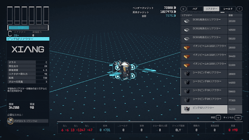| リアクター耐久 | 船体 | クルーの定員 |