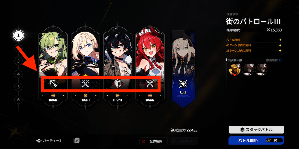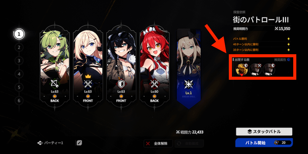 | 戦闘前の編成画面 | 敵アイコンからも確認可 |