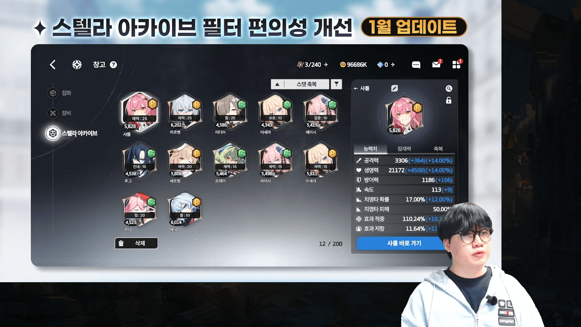 | ステラーアーカイブ祝福リロール機能3月19日ではなく、今後のアップデートで追加予定 |