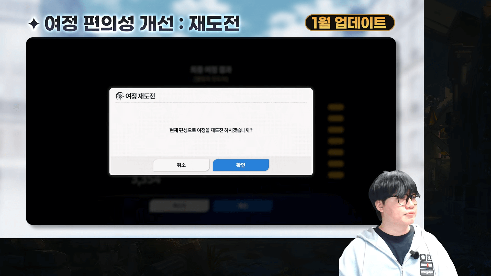 | 「救援の旅」中リトライ機能追加同じセッティングでやり直しが簡単になる |